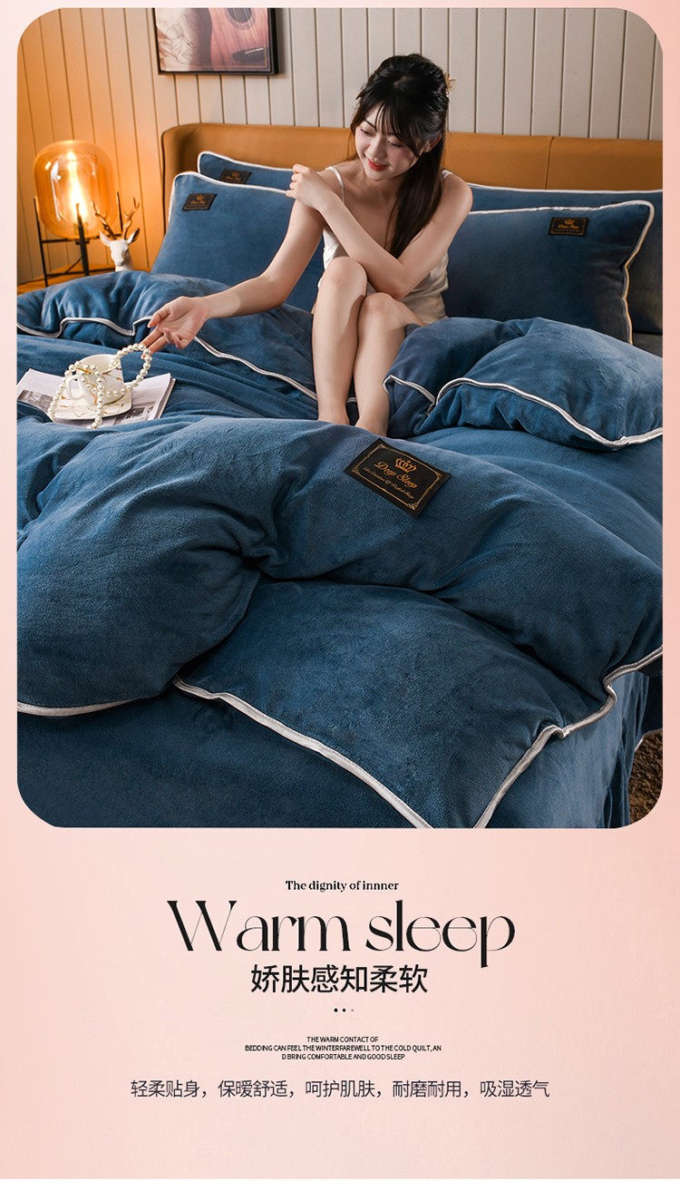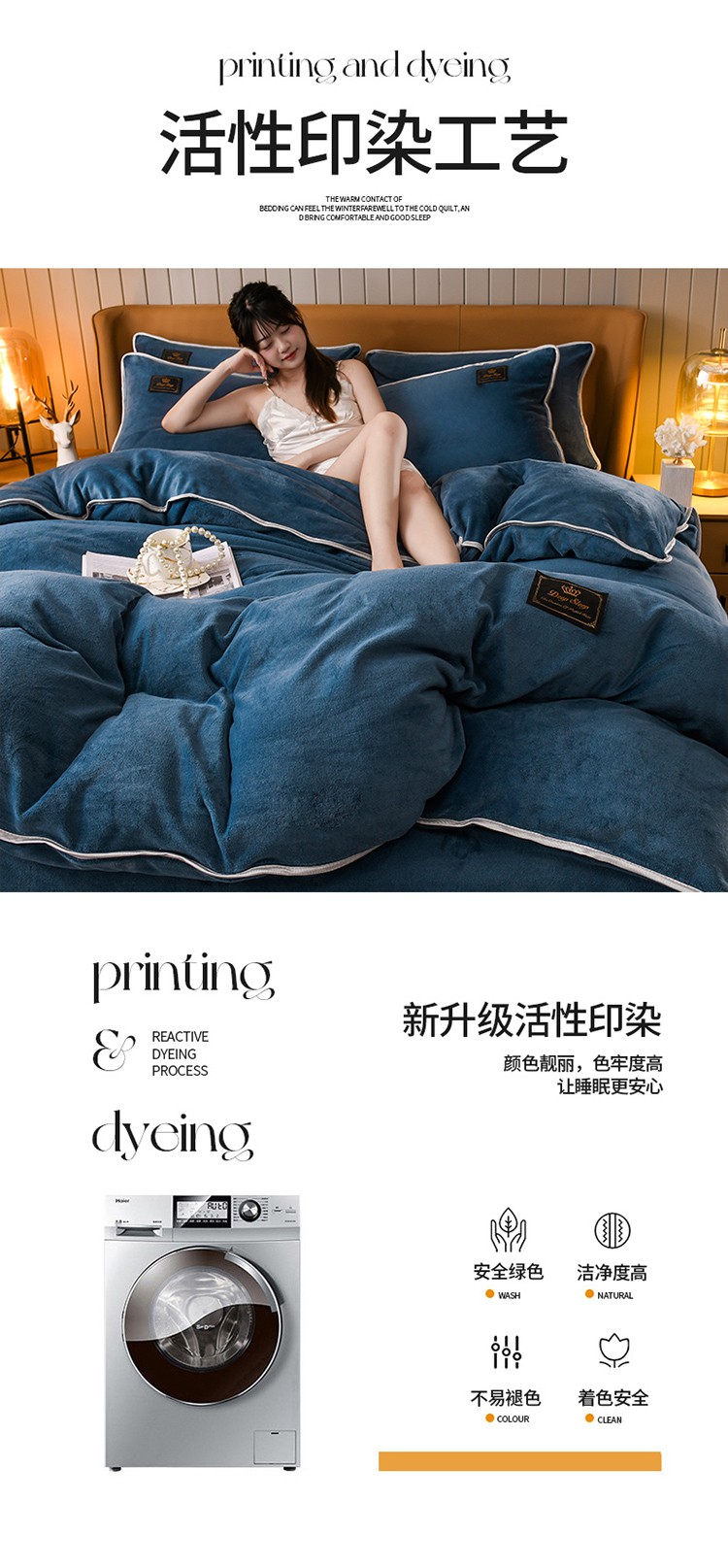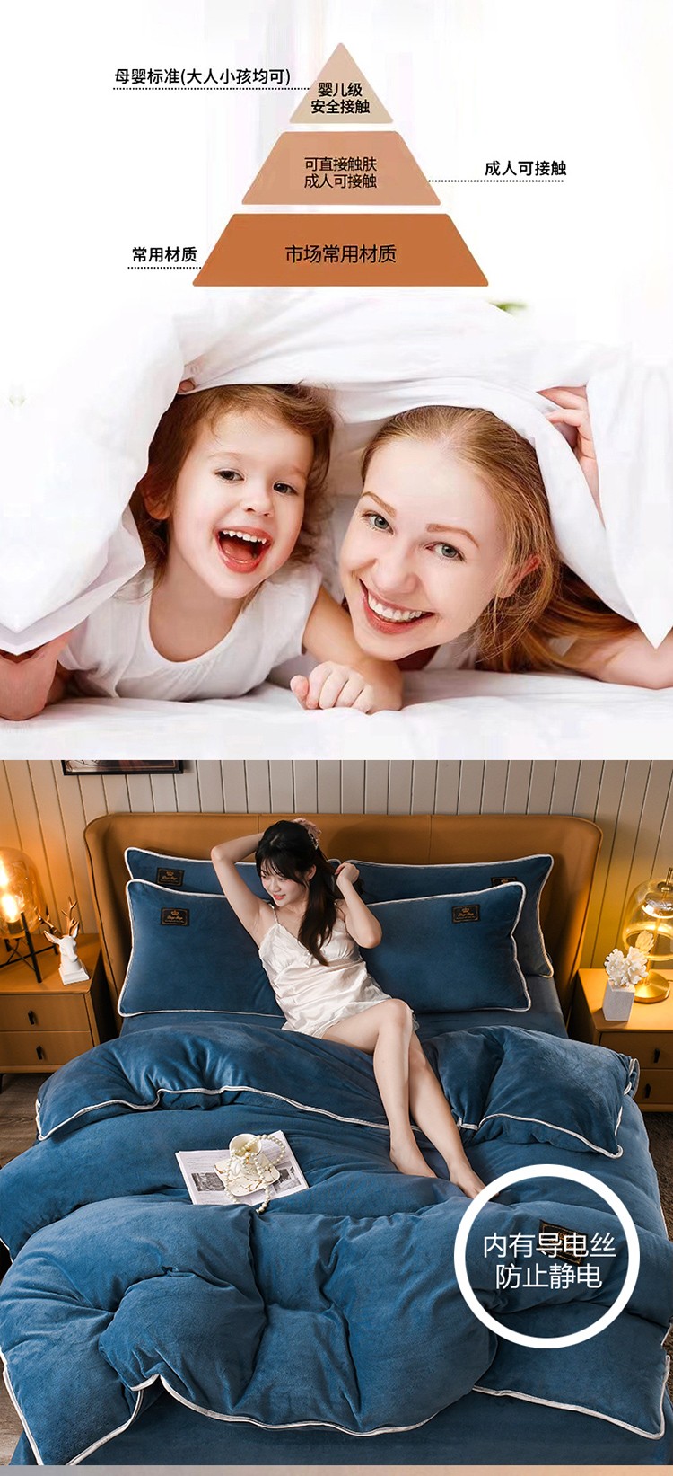 商品名称:德比尔斯 2025新款8.5斤床裙款高克重纯色牛奶绒四件套宾利蓝