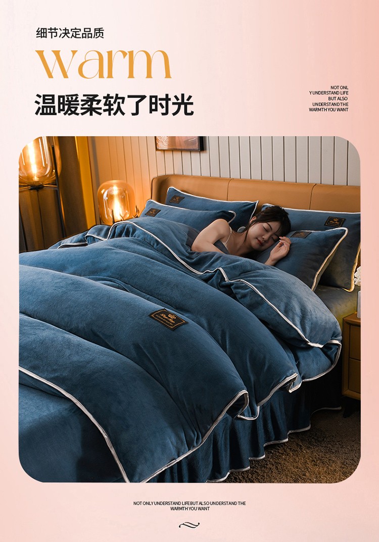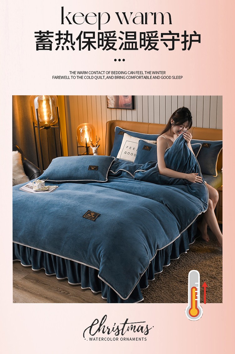 德比尔斯 2025新款8.5斤床裙款高克重纯色牛奶绒四件套宾利蓝
