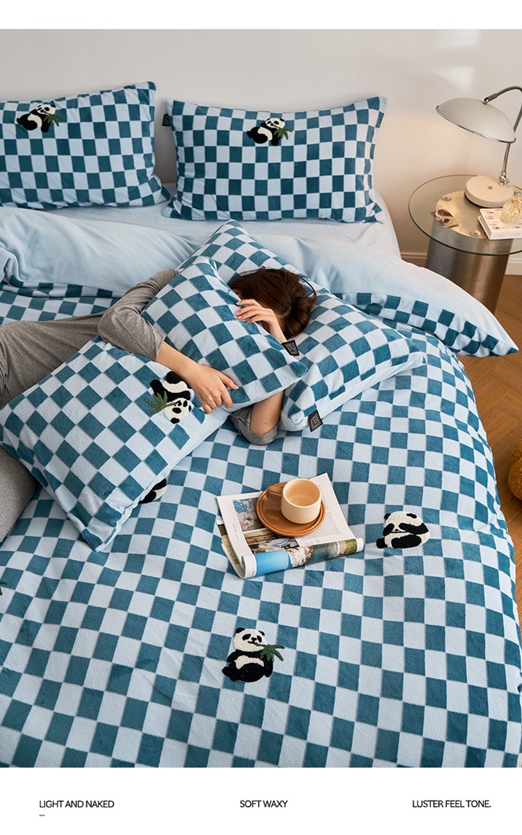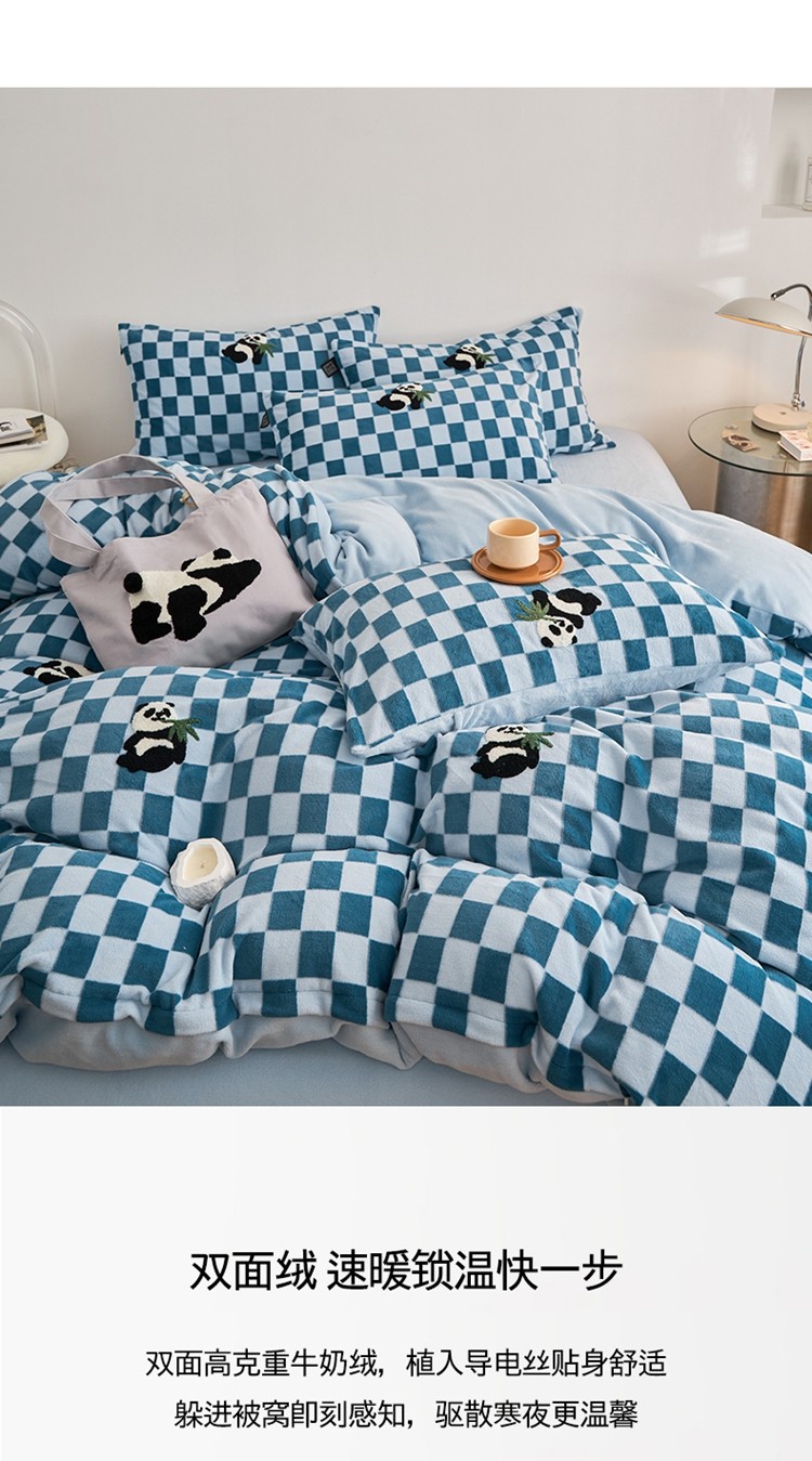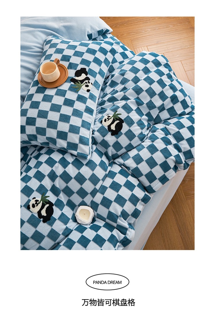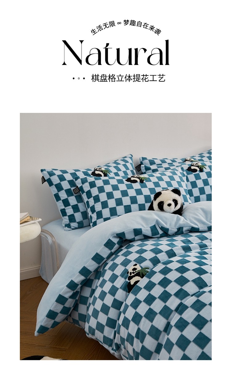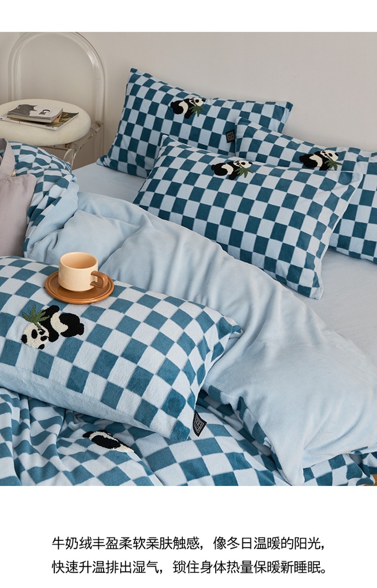 商品名称:风向标 20222新款立体提印棋盘格牛奶绒四件套 棋盘格熊猫-夜海蓝