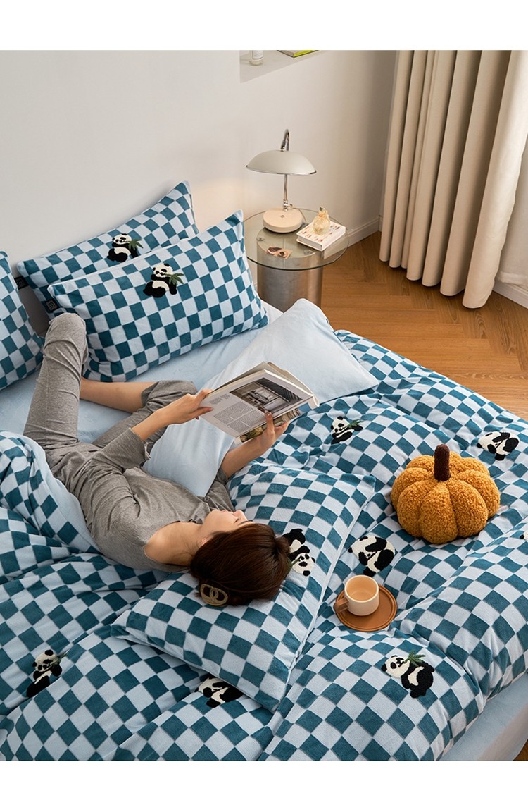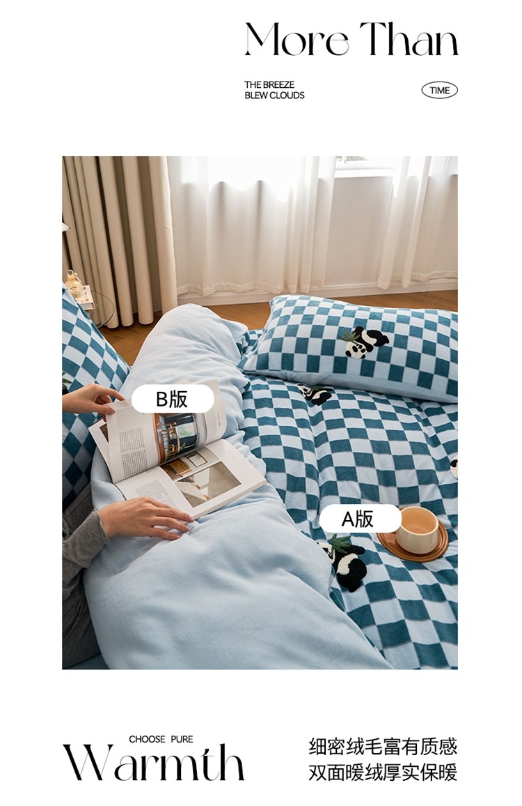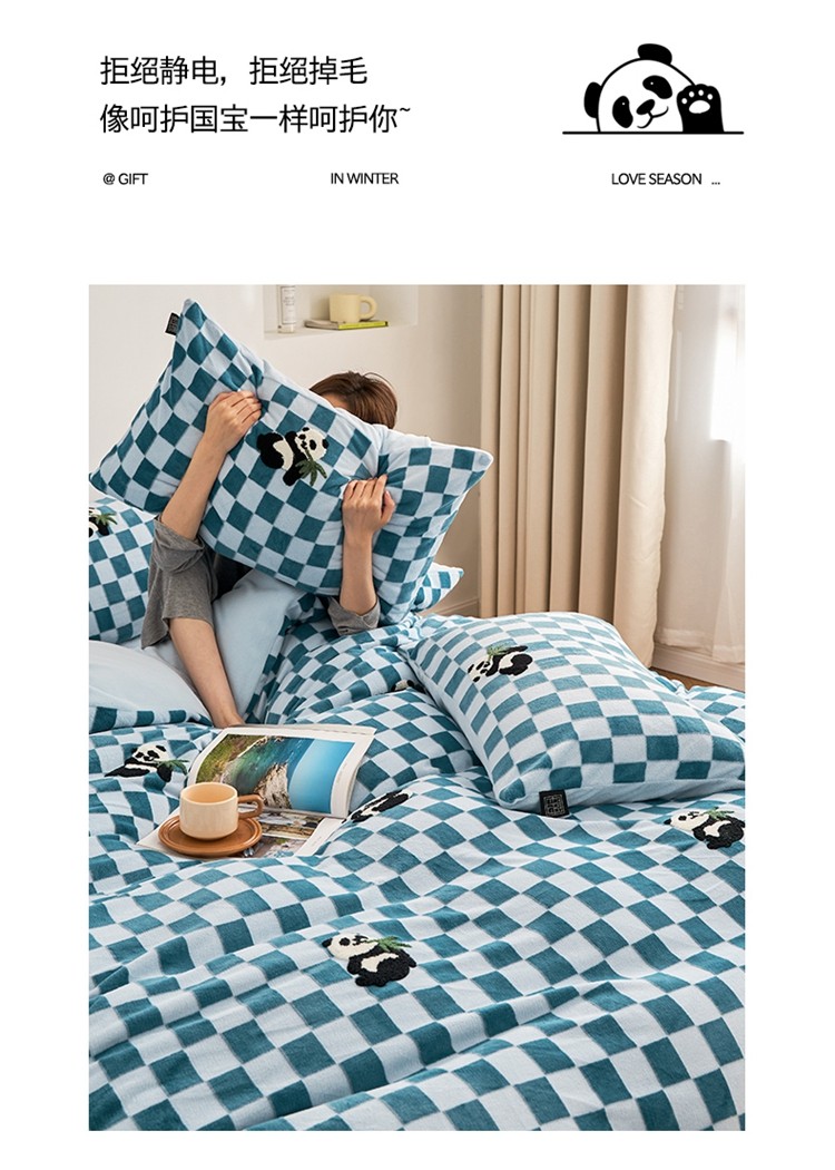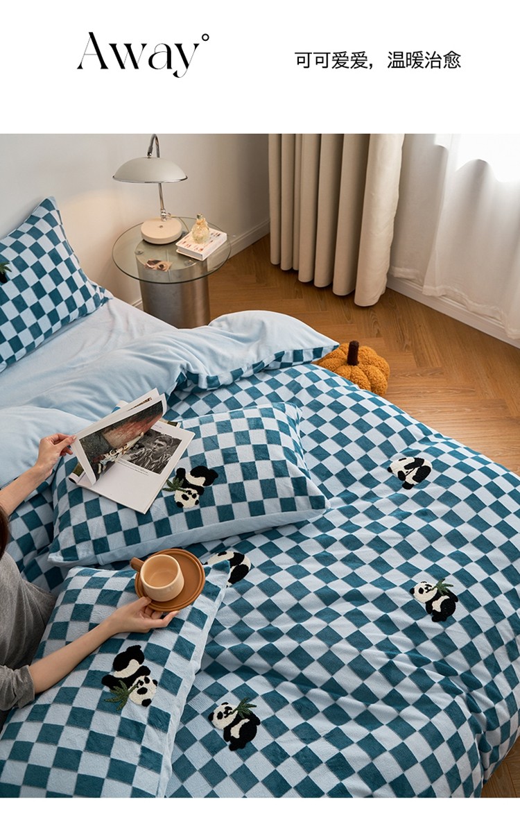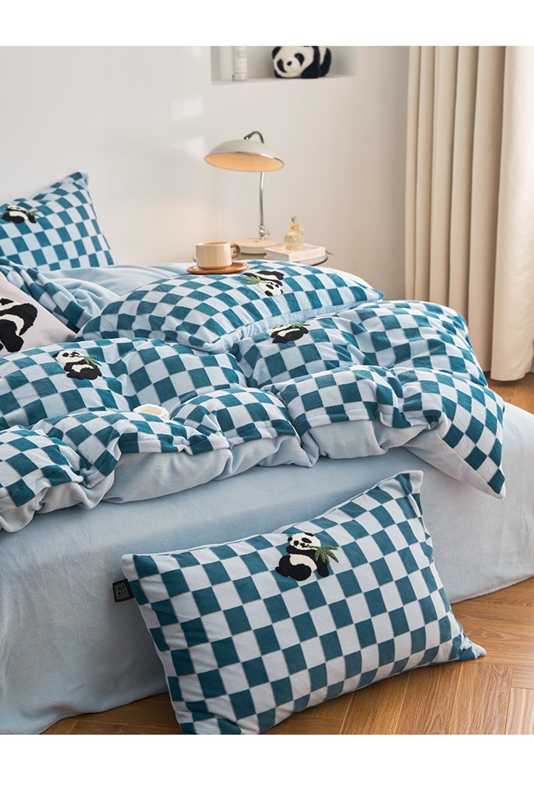商品名称:风向标 20222新款立体提印棋盘格牛奶绒四件套 棋盘格熊猫-夜海蓝
