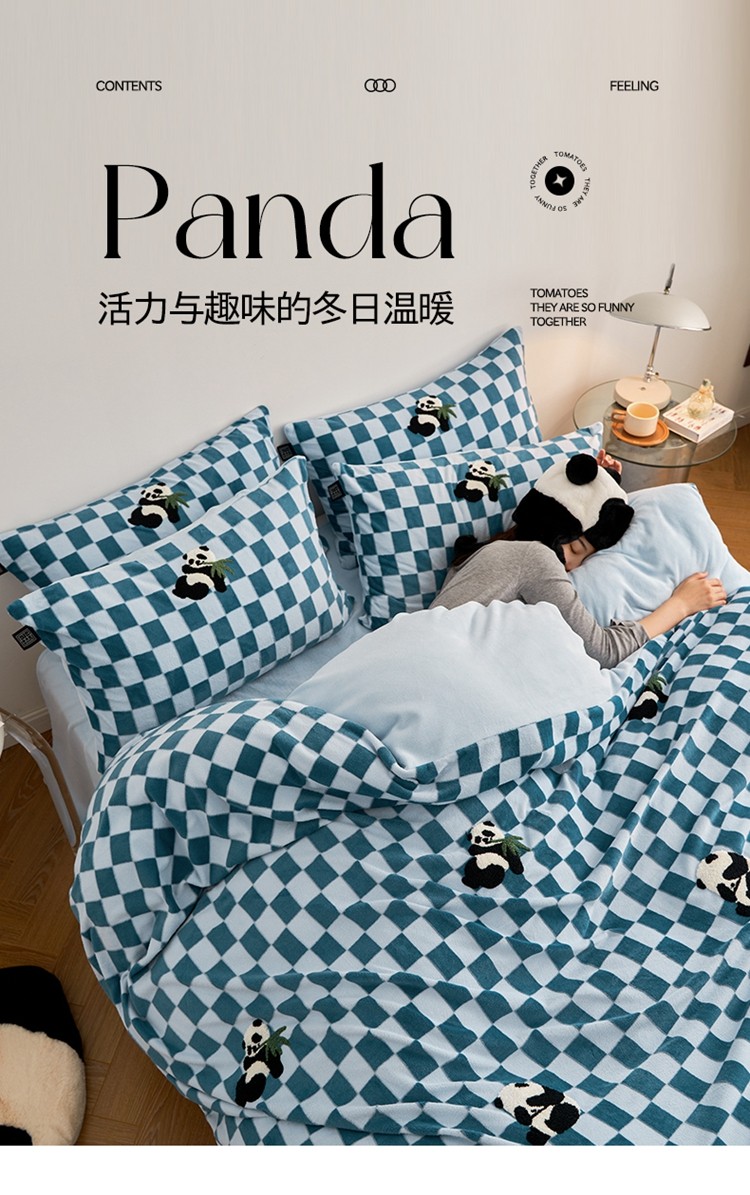 2022锦芙牛奶绒250克全消光绣花四件套,情绪熊猫-白竹
