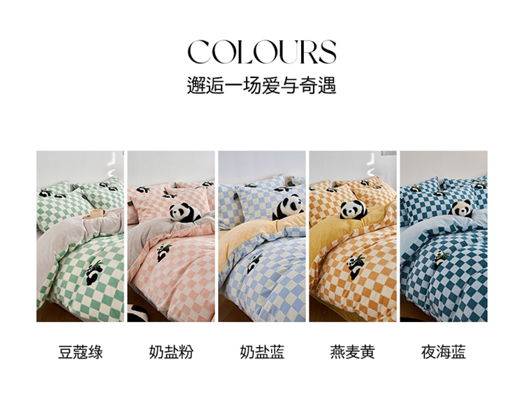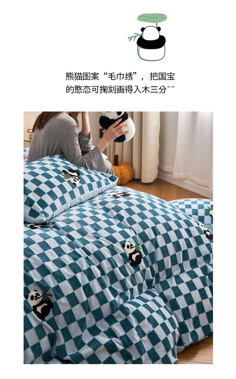 2022锦芙牛奶绒250克全消光绣花四件套,情绪熊猫-绿竹