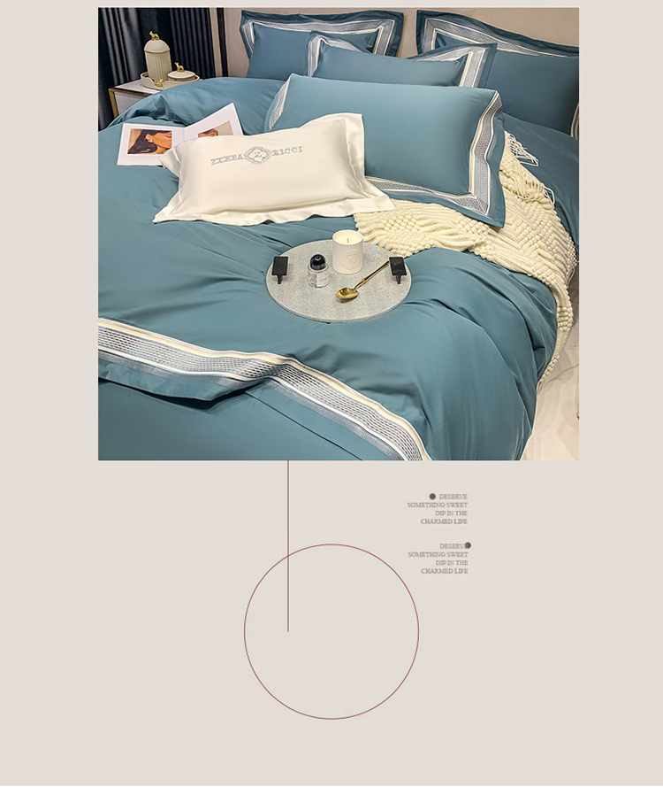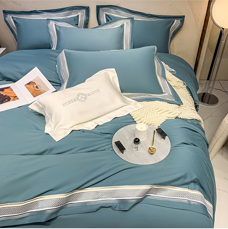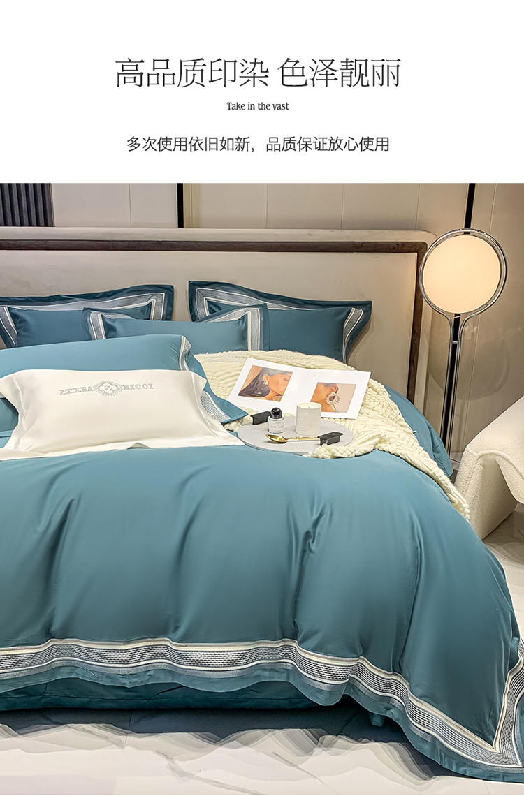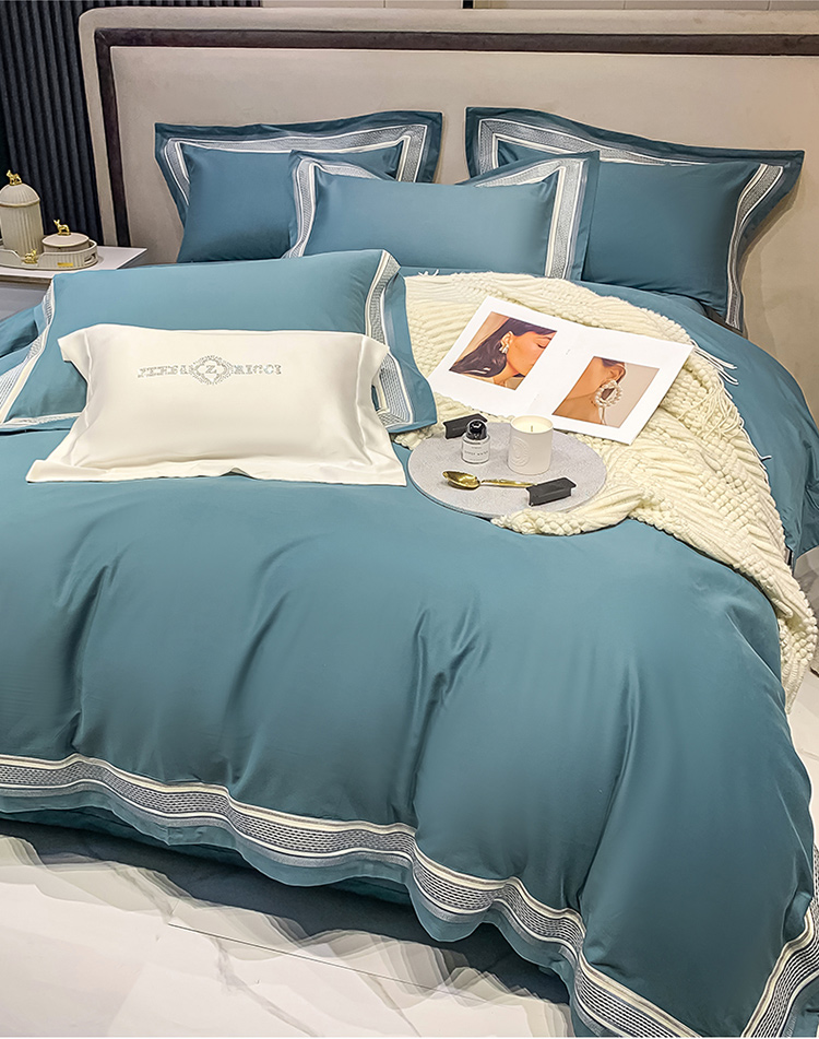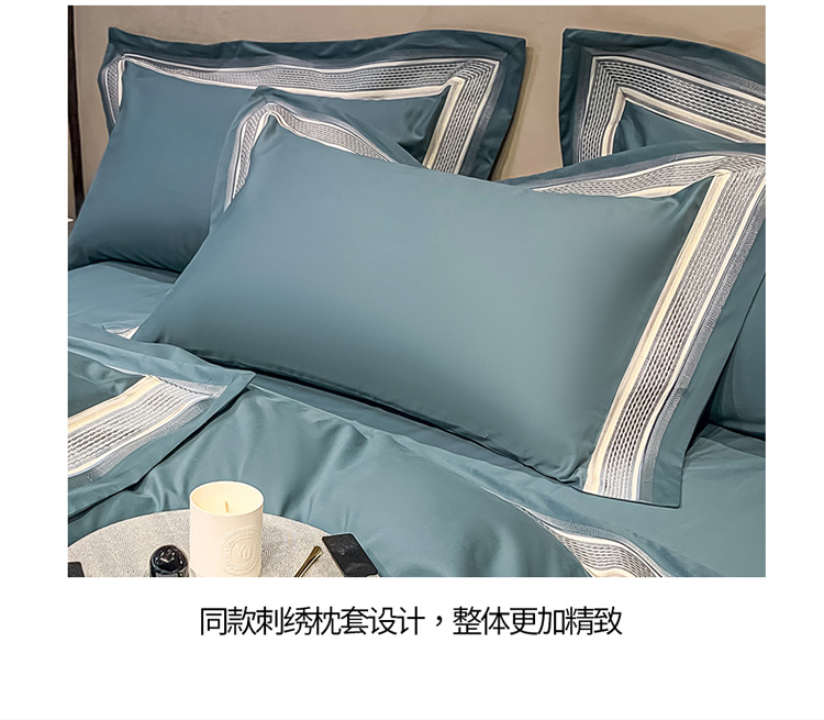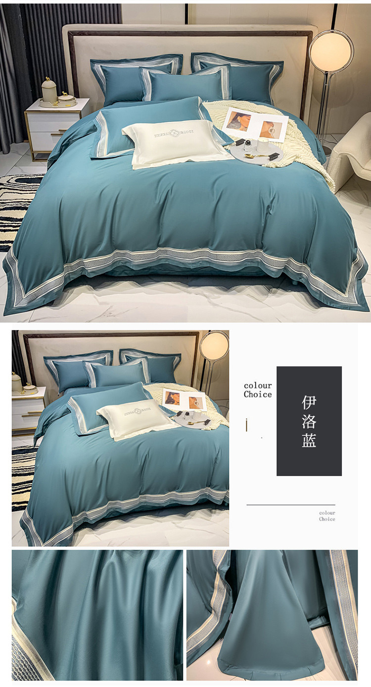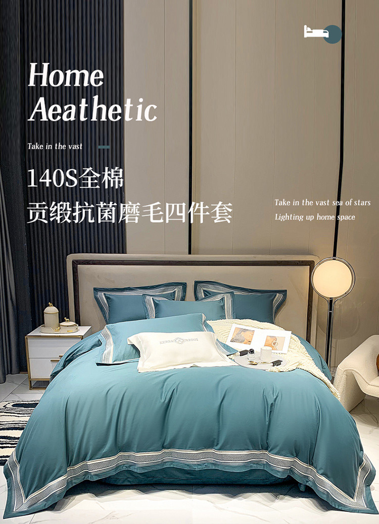 商品名称:淼铭 秋冬新品全棉贡缎抗菌超柔磨毛-伊洛系列 伊洛-蓝