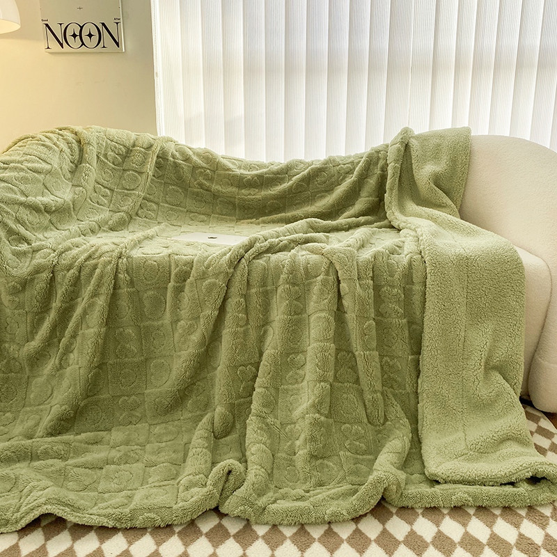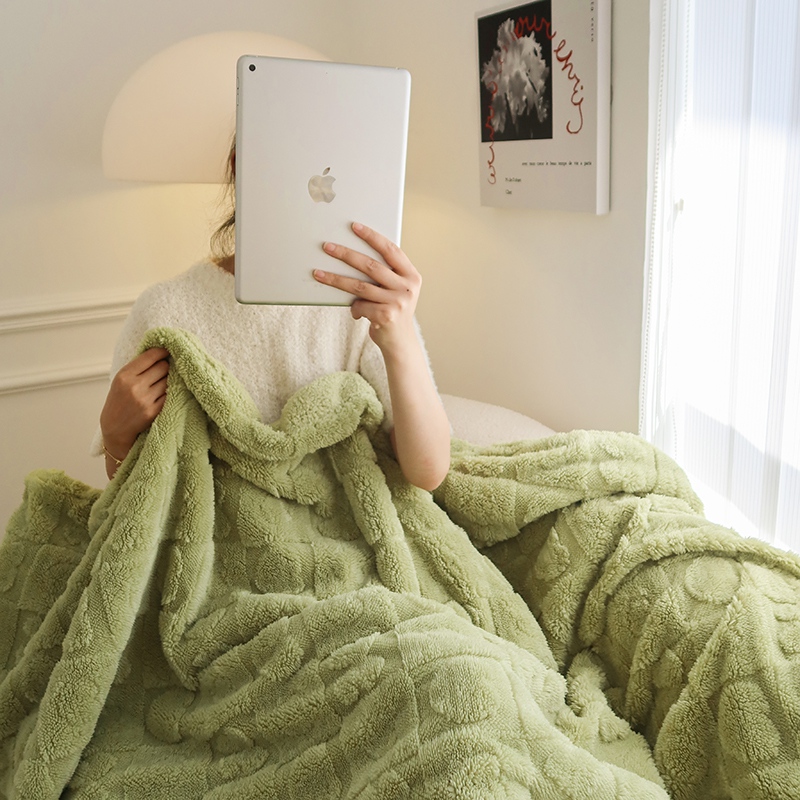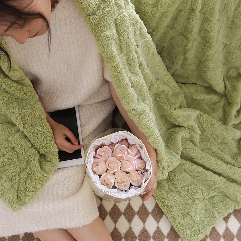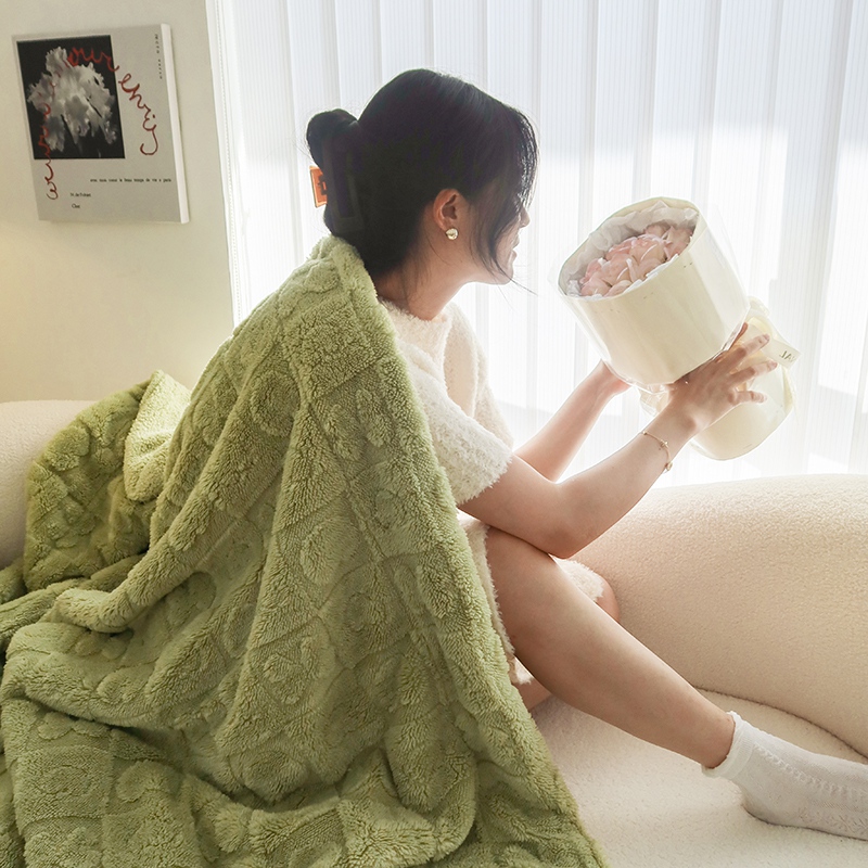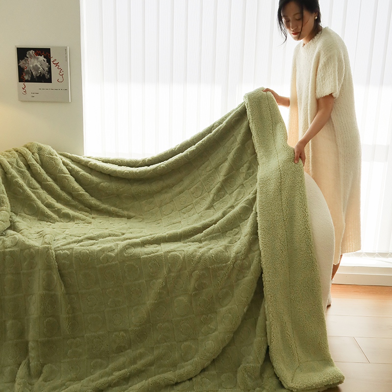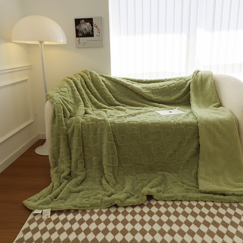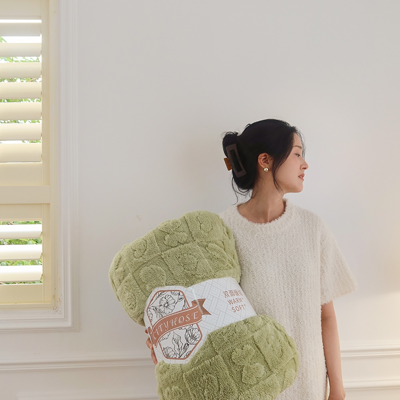 商品名称:顾里22新款慕斯绒提花剪花大朵羊羔绒双层暗合压线毛毯场景二 芭乐绿