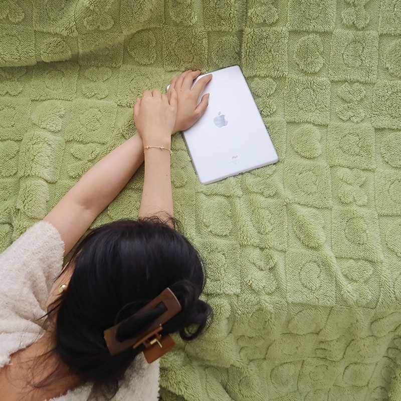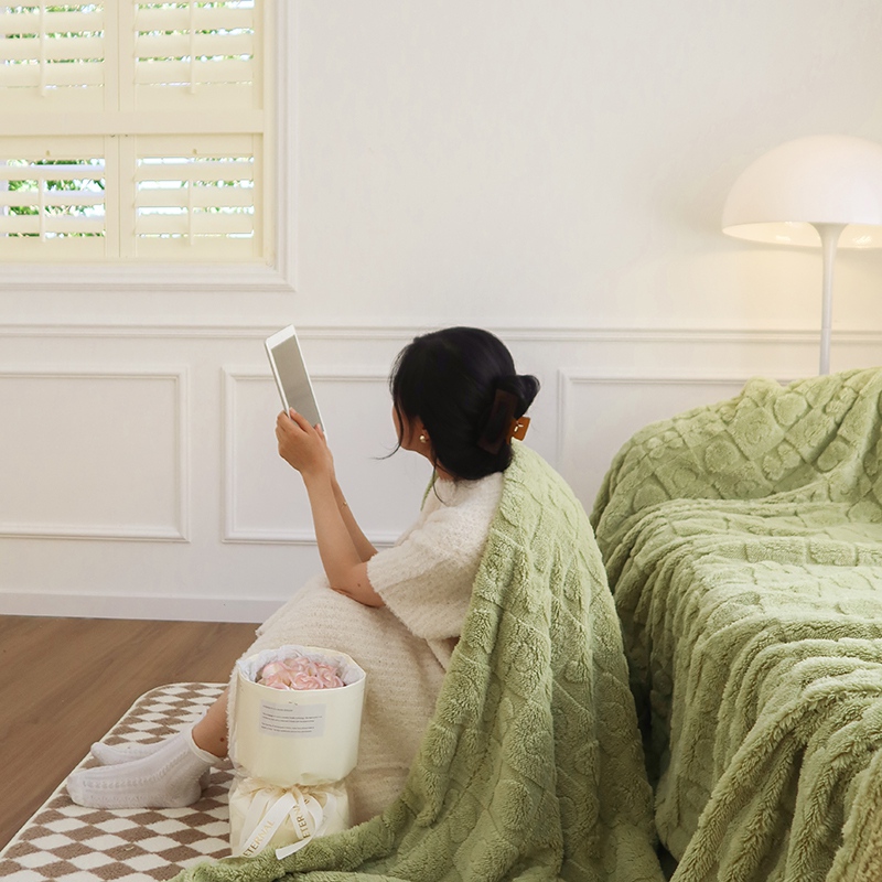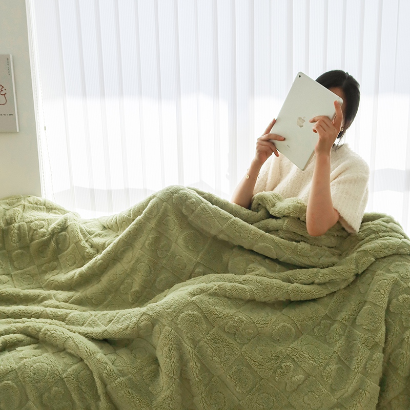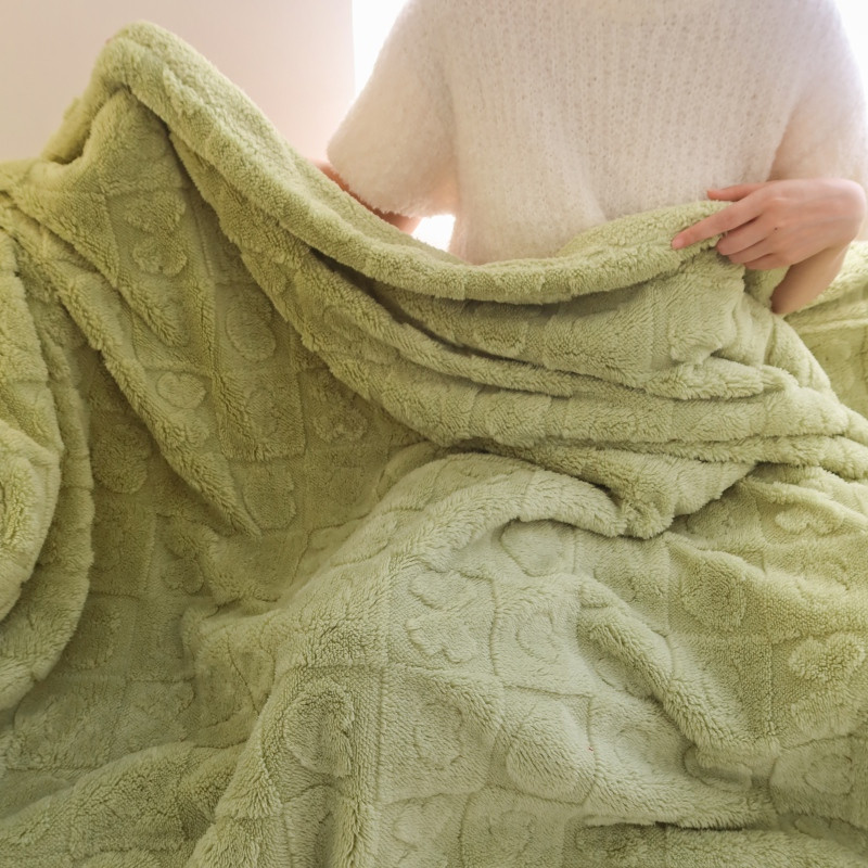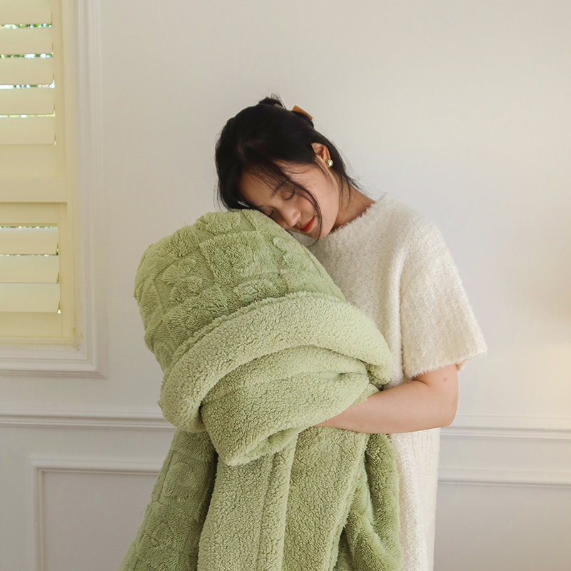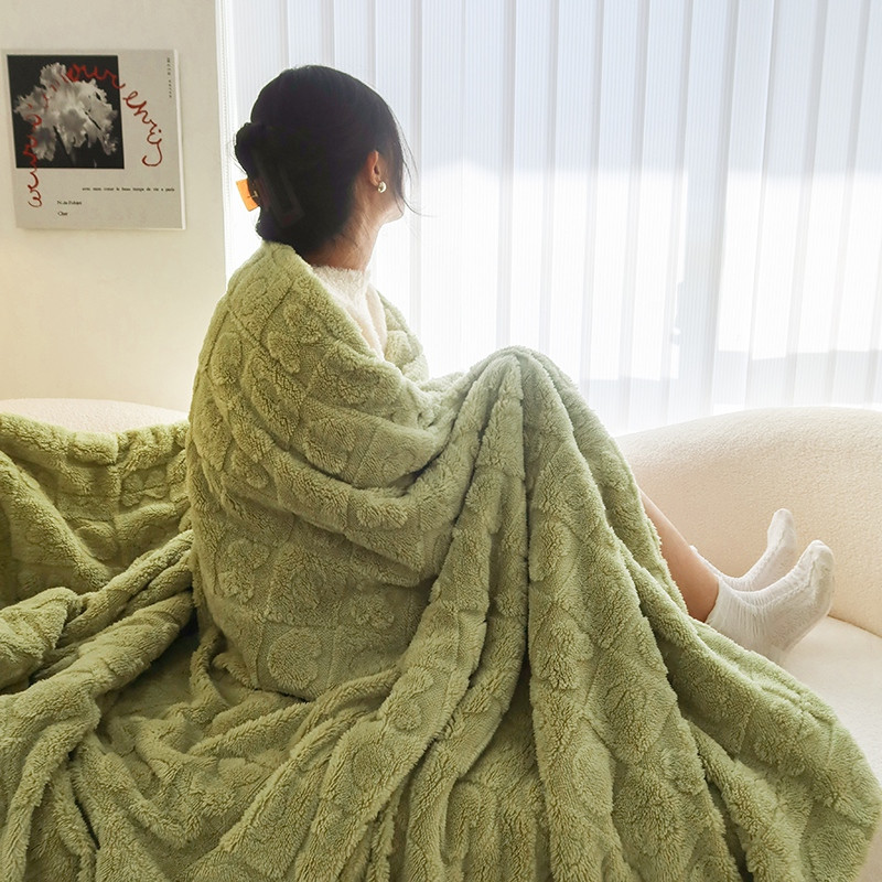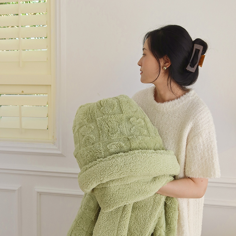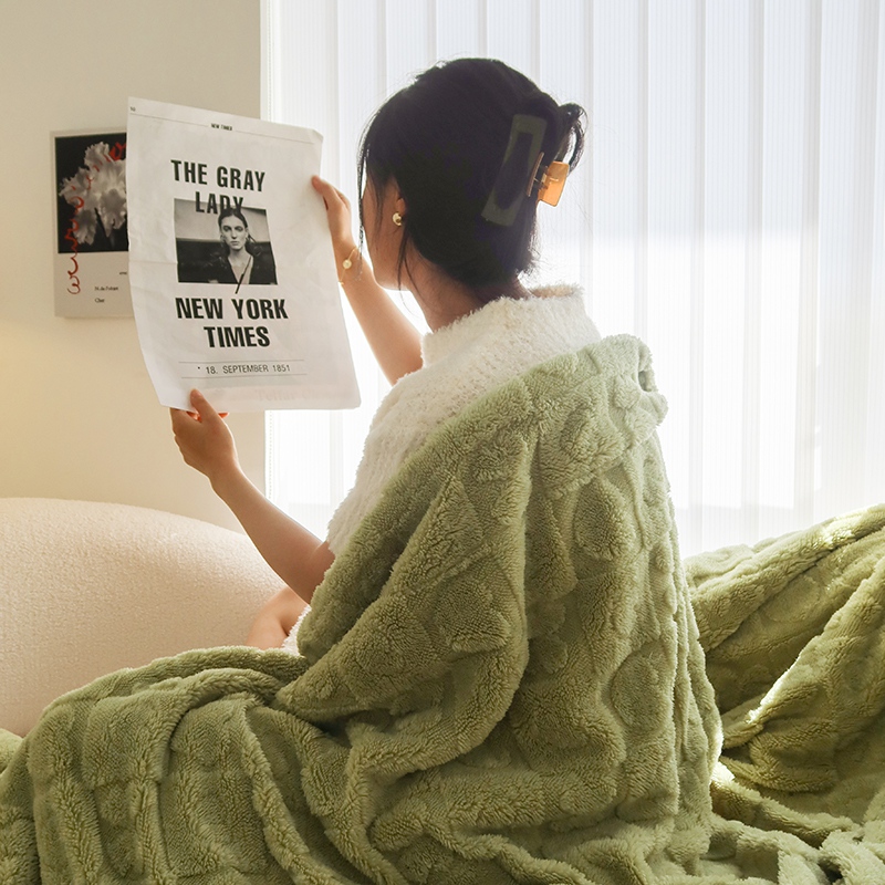 商品名称:顾里22新款慕斯绒提花剪花大朵羊羔绒双层暗合压线毛毯场景二 芭乐绿