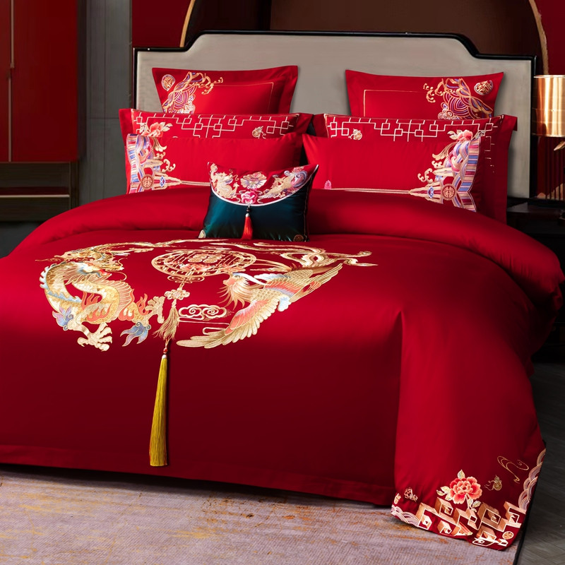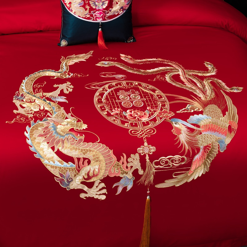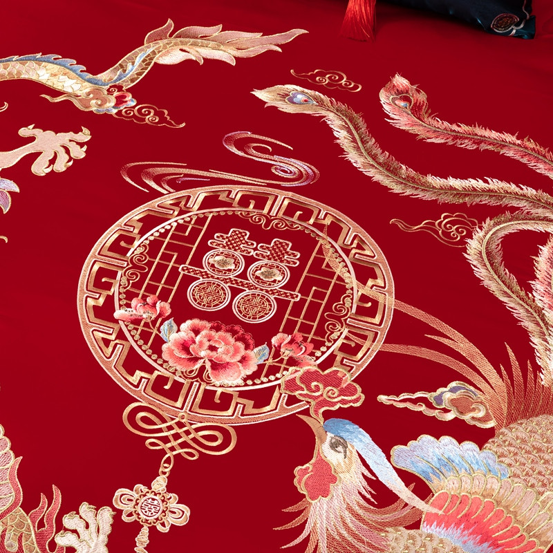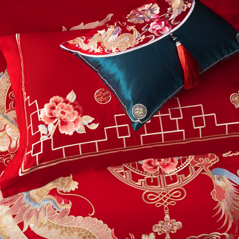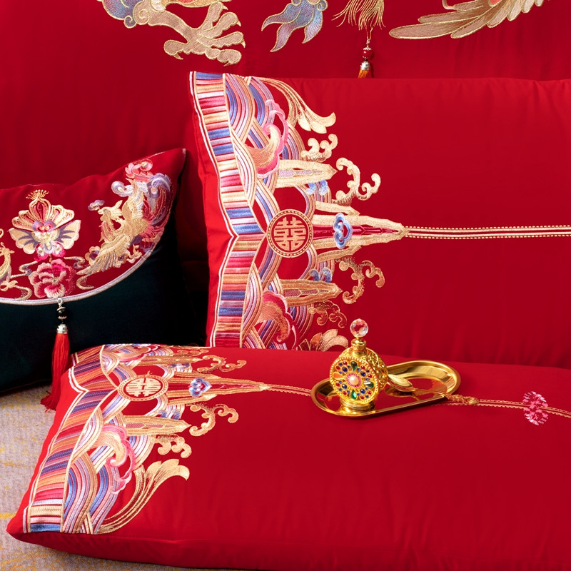 当前位置: 91家纺网 > 商品网购 > 床品套件 > 四件套 > 婚庆四件套 > 用心 2022新款精梳棉高端刺绣婚庆四件套 幸福驾到