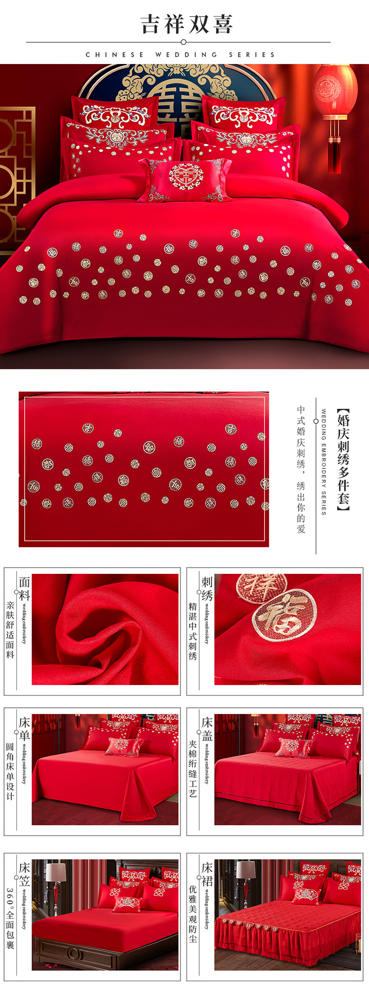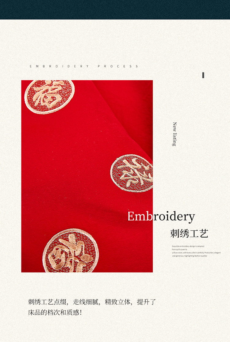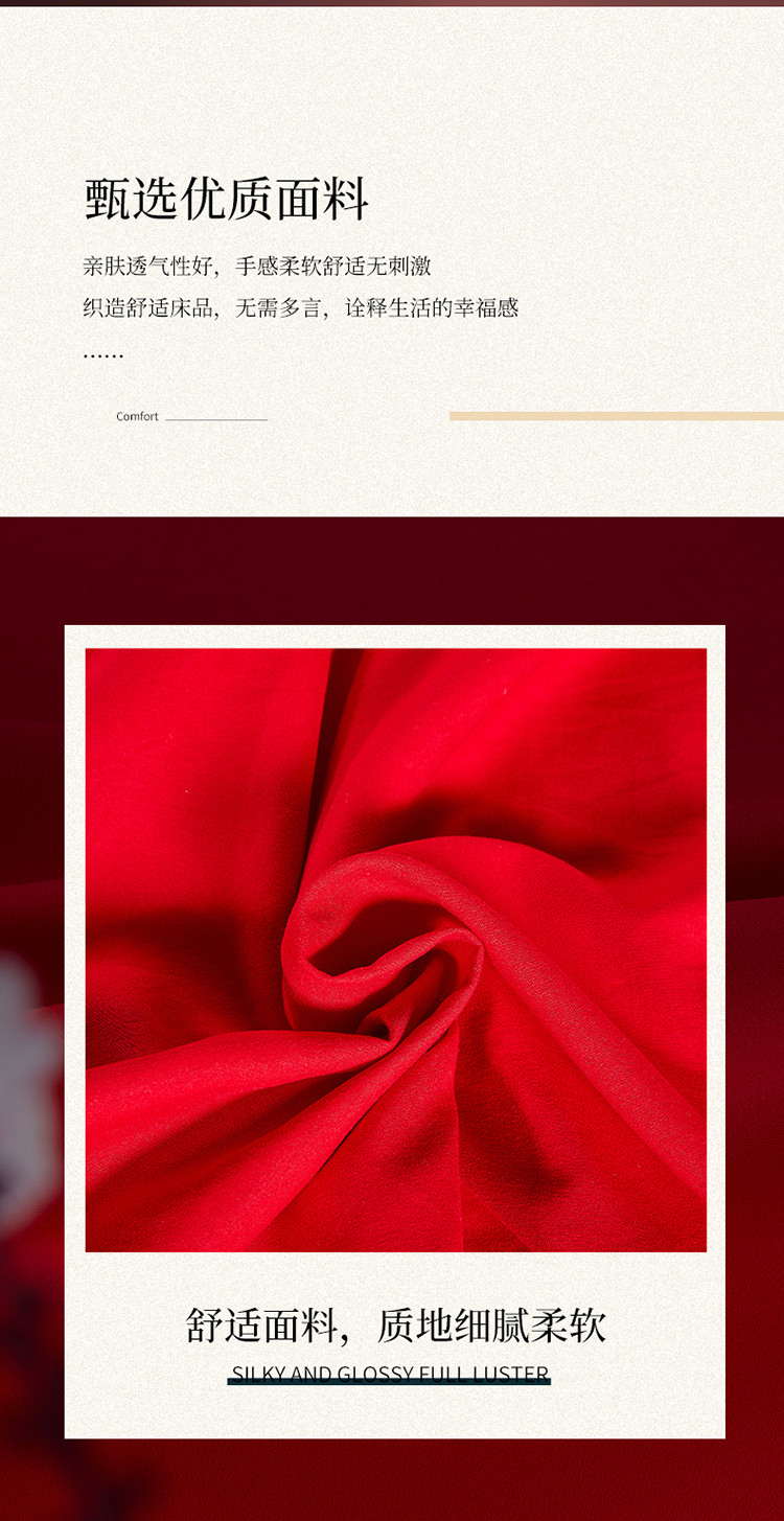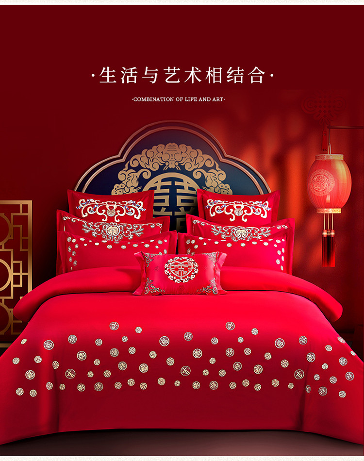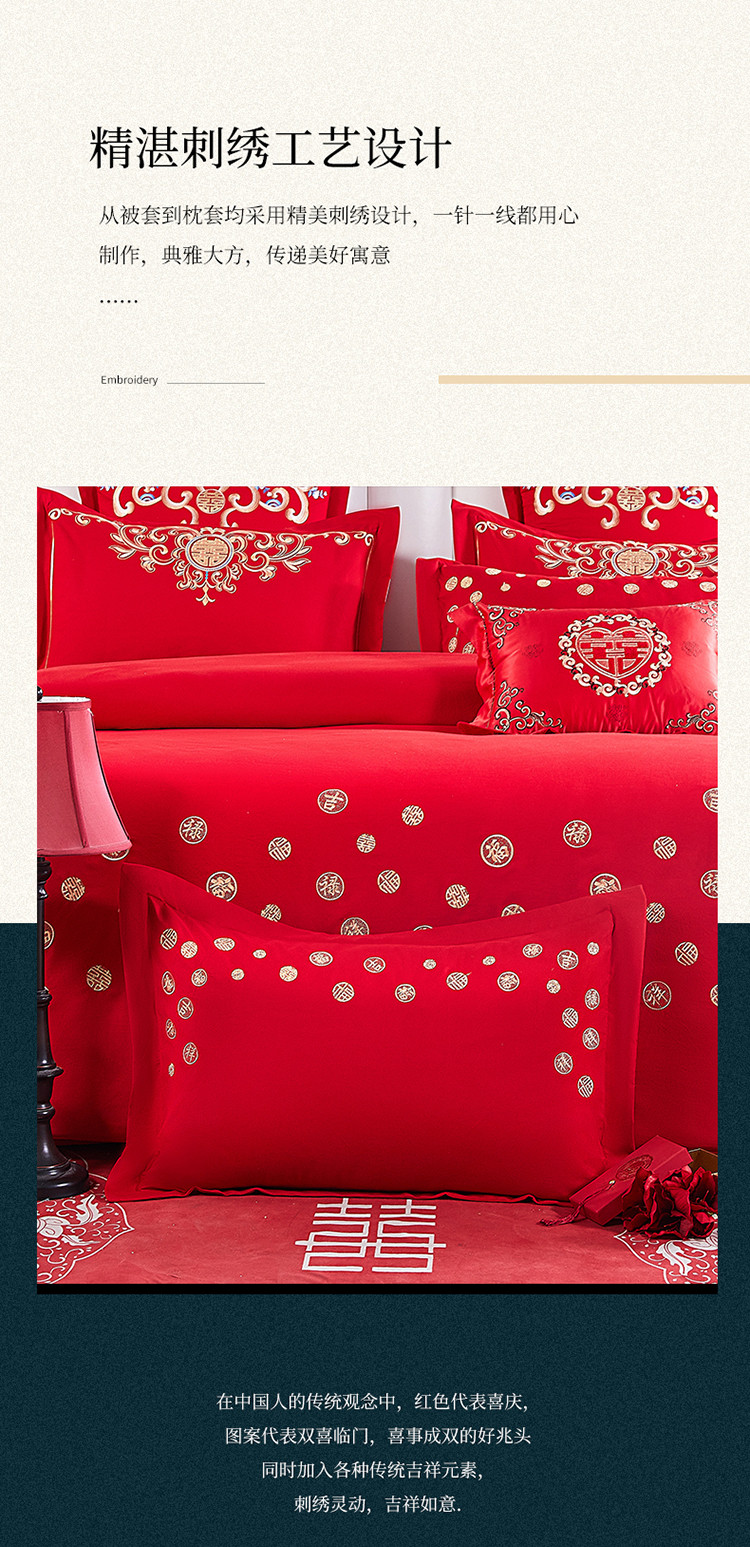 当前位置: 91家纺网 > 商品网购 > 床品套件 > 四件套 > 婚庆四件套 > 玉雅家纺 2025新款婚庆亲肤棉刺绣四件套 吉祥双喜