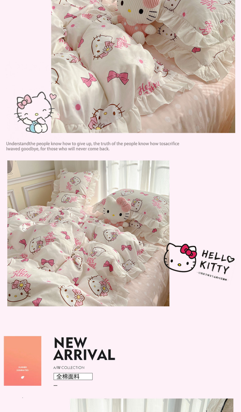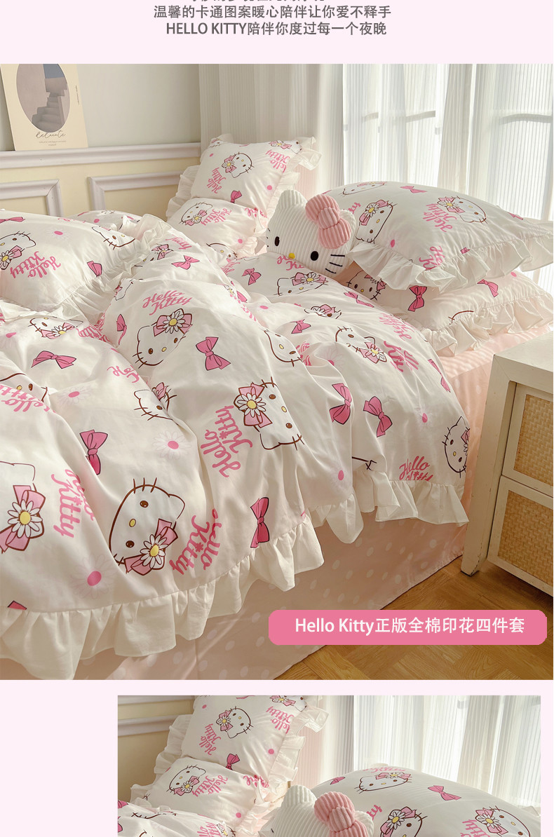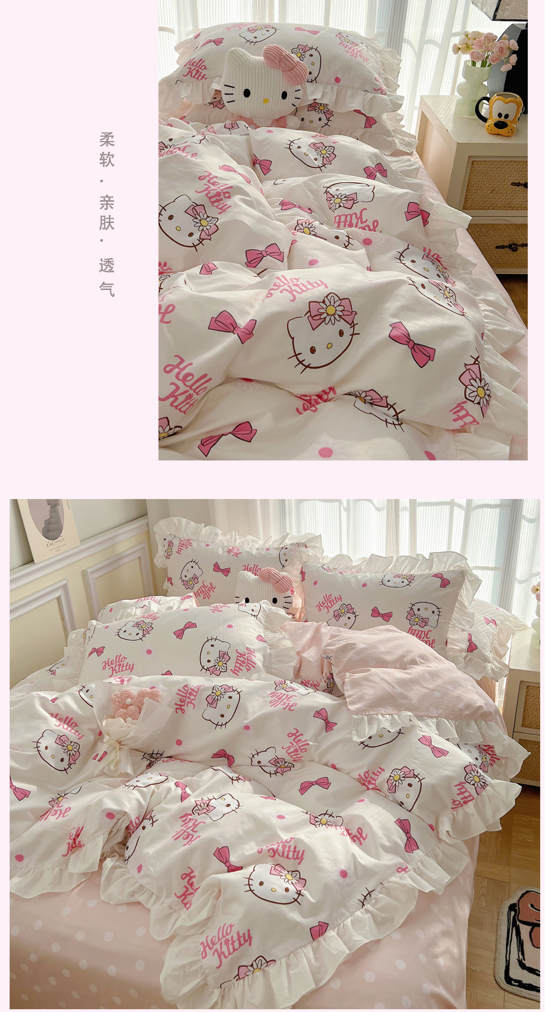 三朵卡通系列全棉花边款四件套 花边-甜心KT