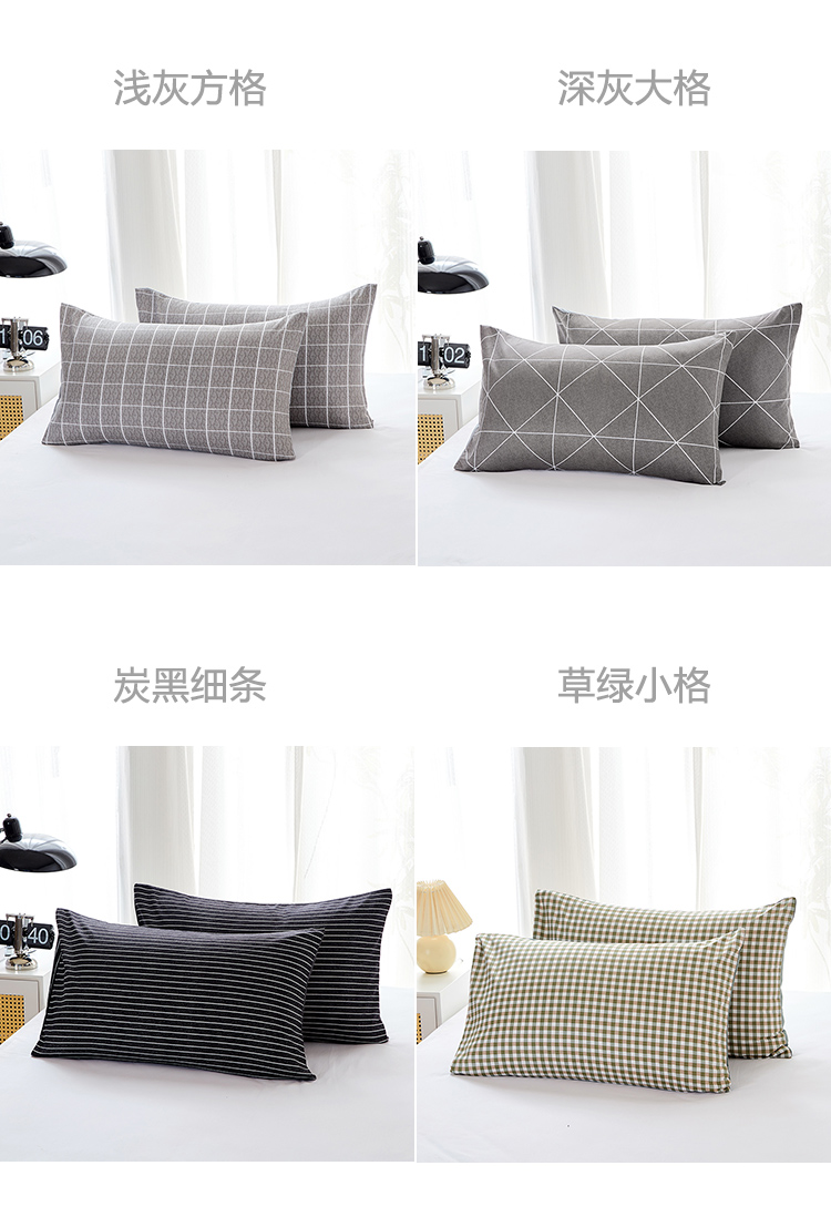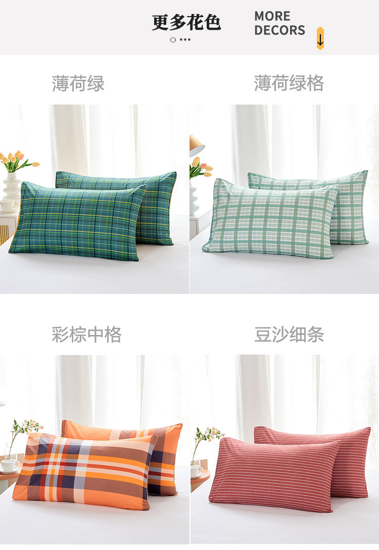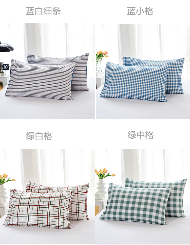 商品名称:丰淘 2022新款条纹水洗棉枕套 草绿小格