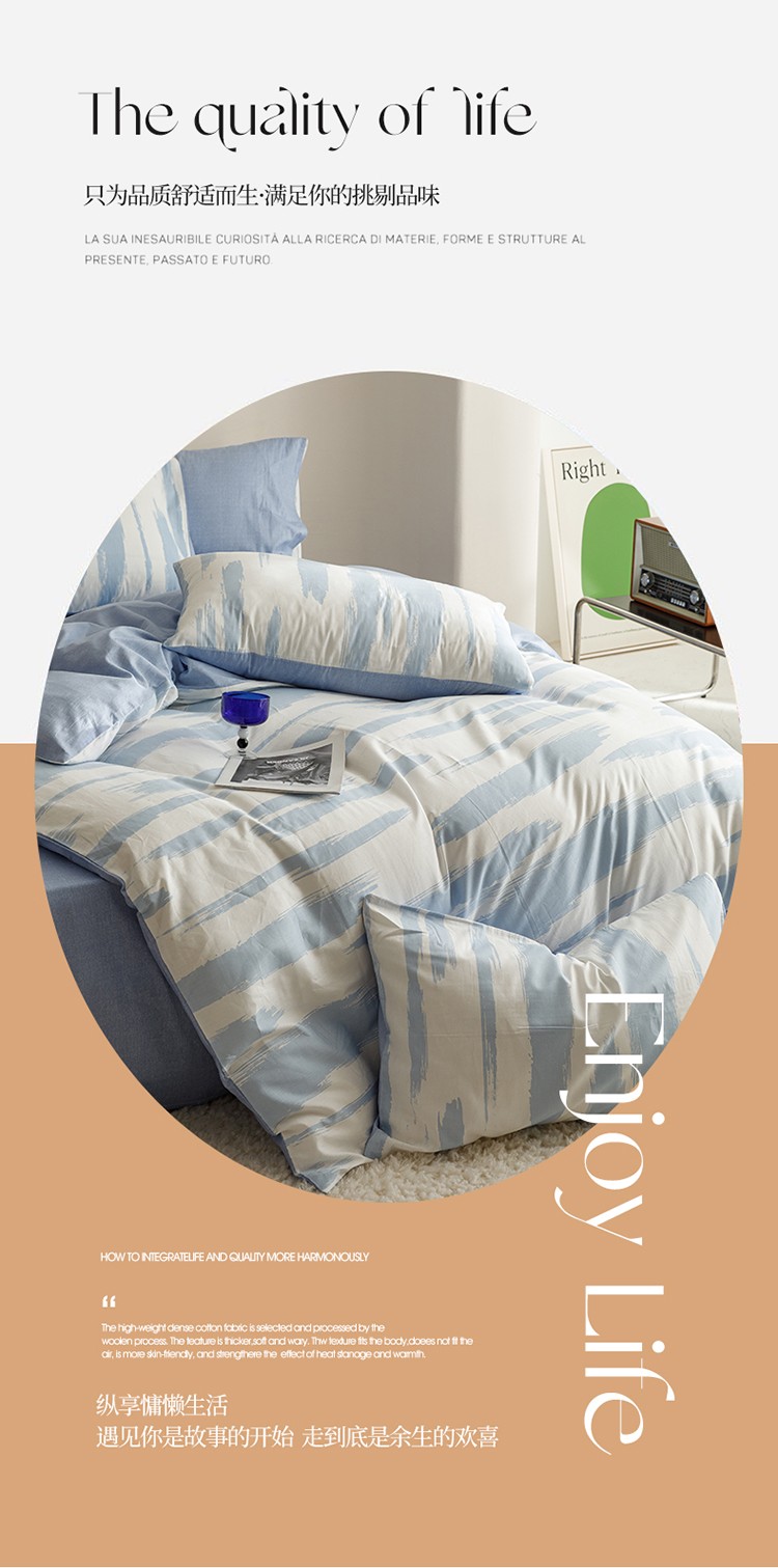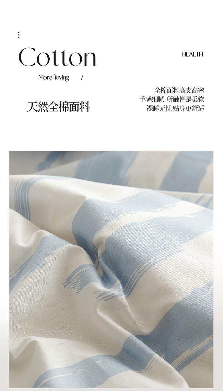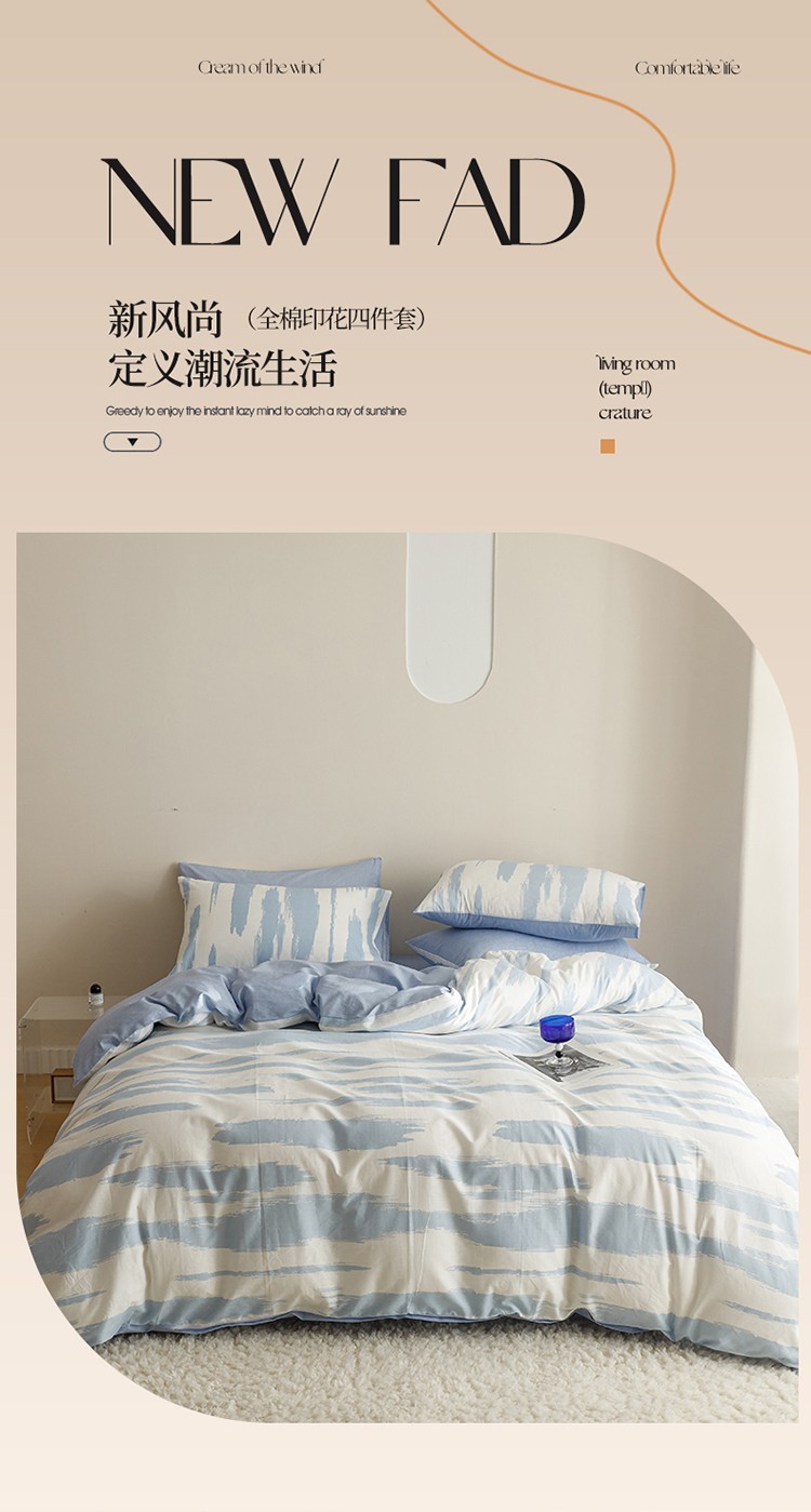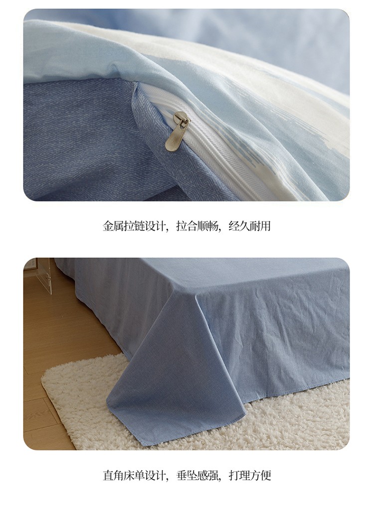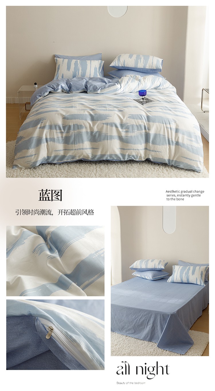 蓝邻家纺 2023新款全棉印花四件套简约系类四件套 蓝图