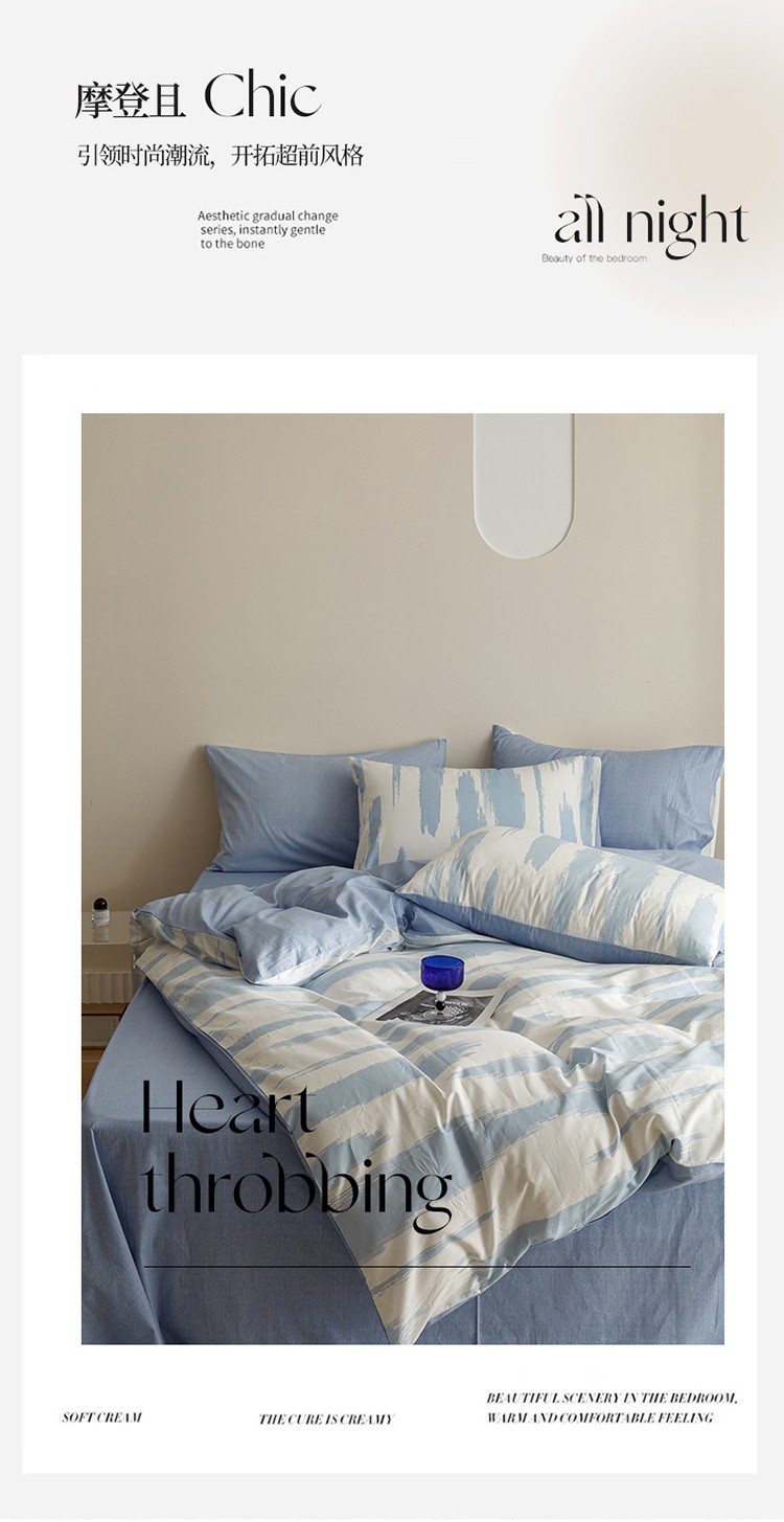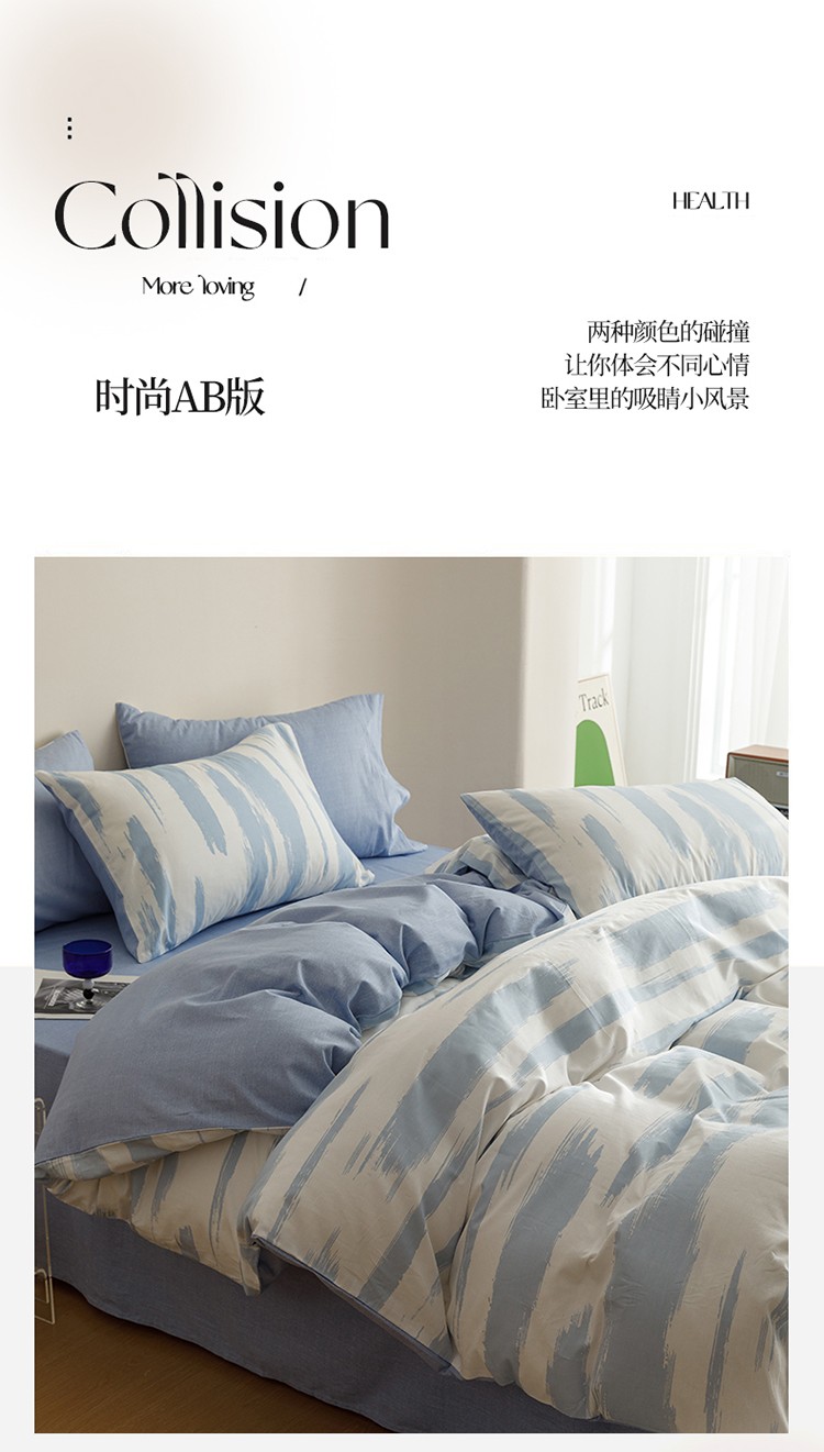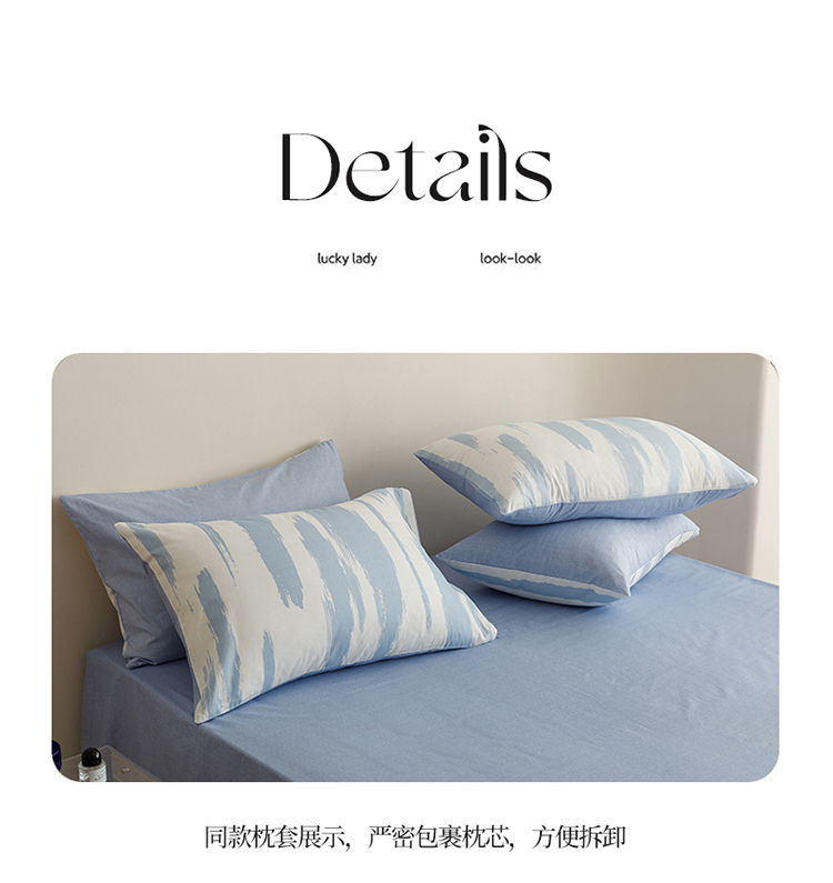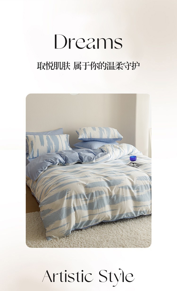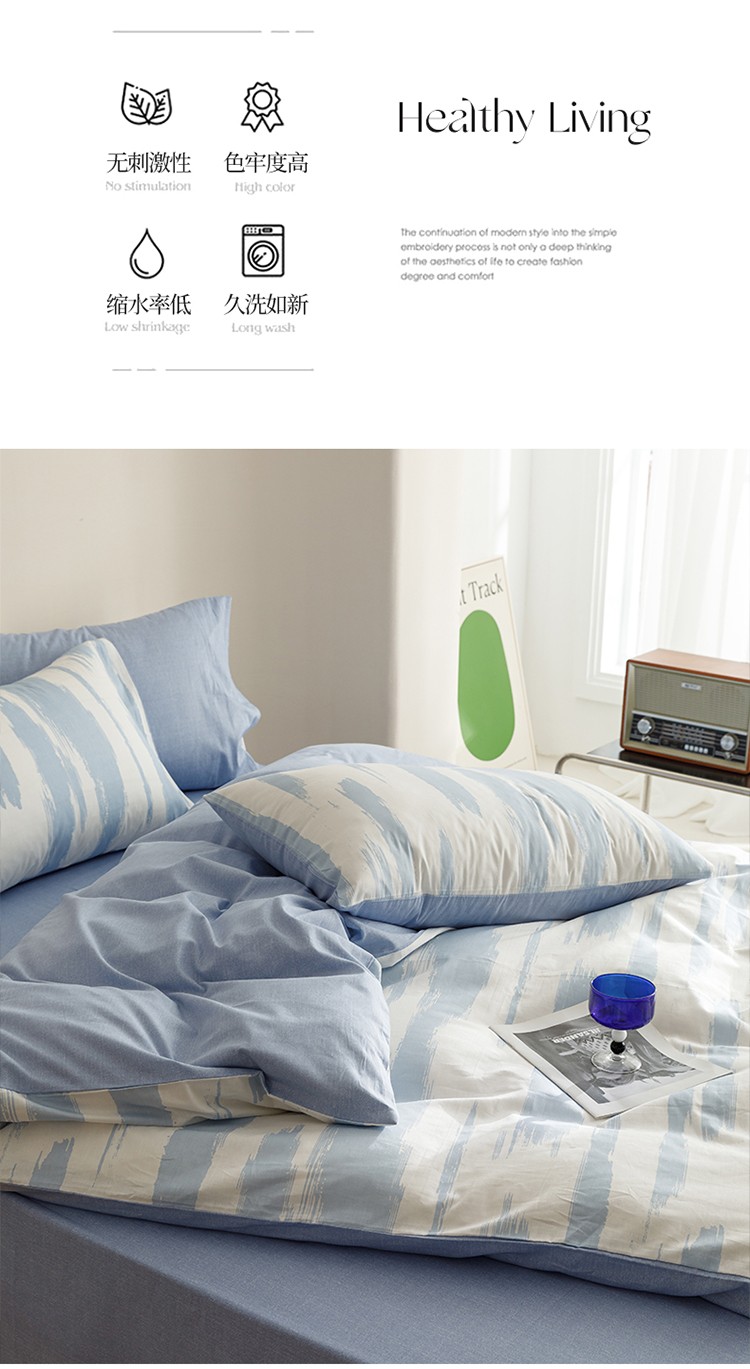 蓝邻家纺 2023新款全棉印花四件套简约系类四件套 蓝图
