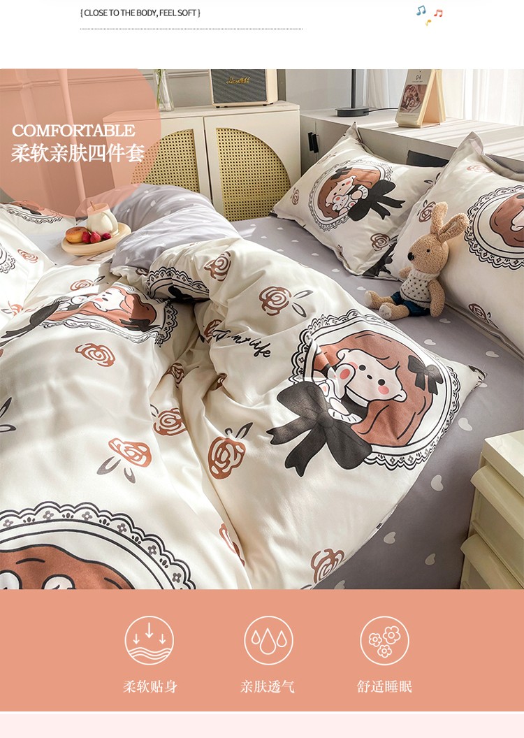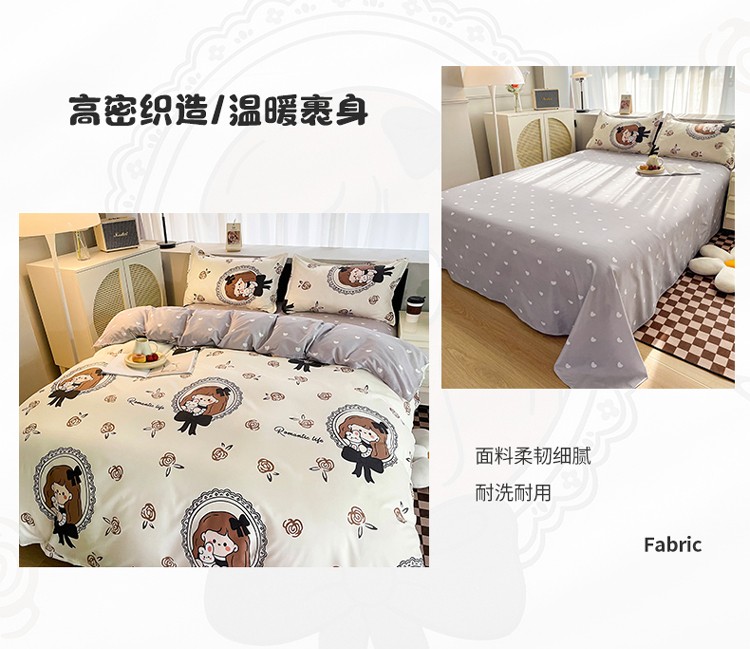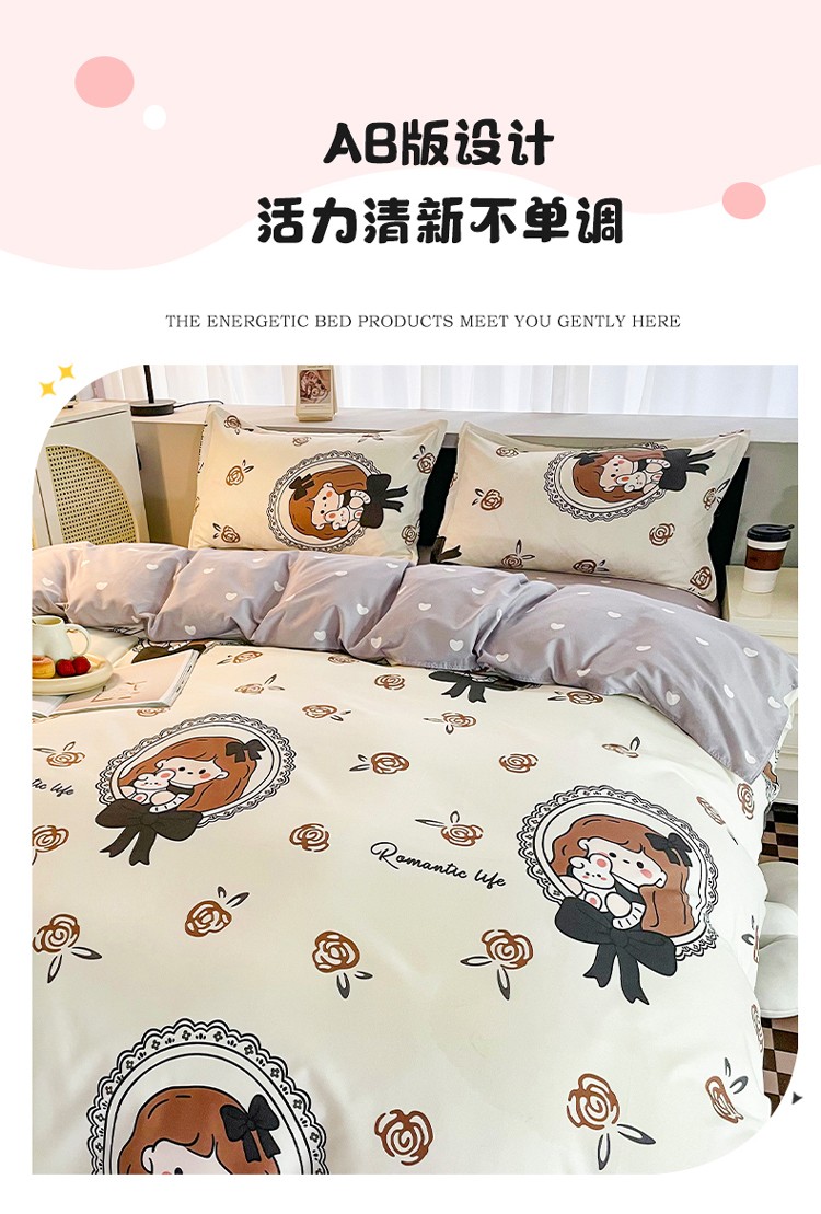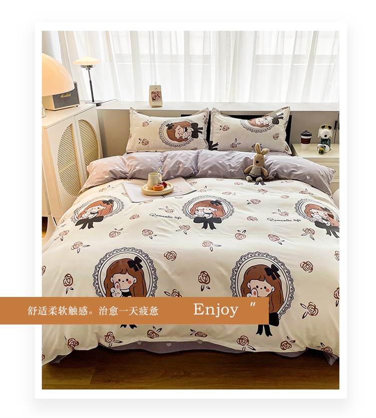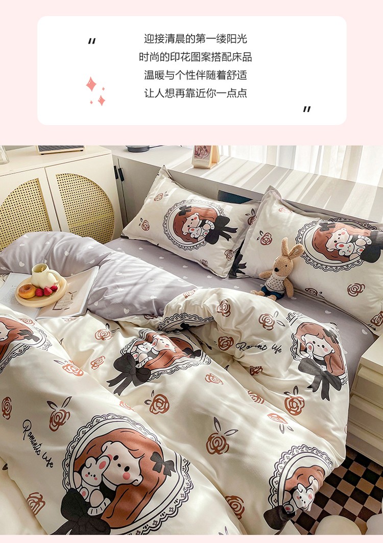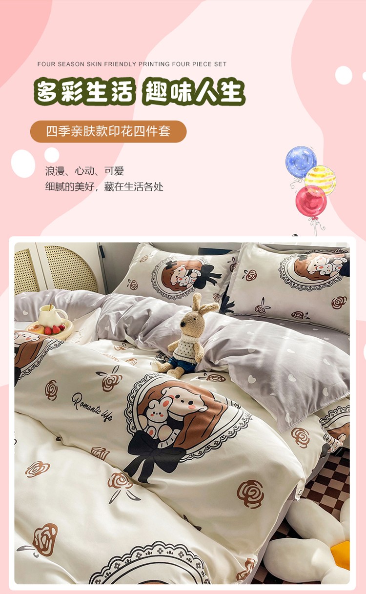 宏源2022年12月新款芦荟棉亲肤印花四件套 玫瑰女孩