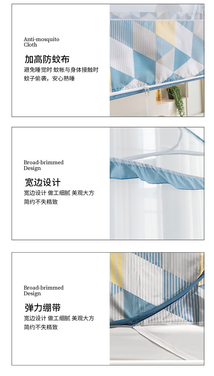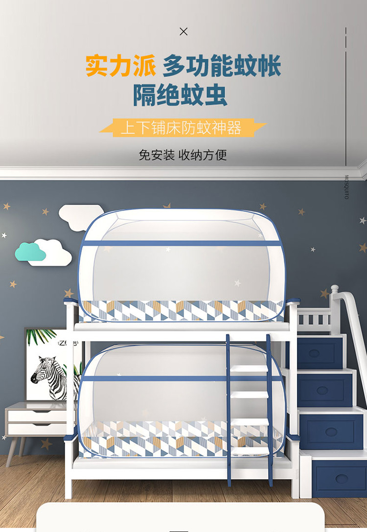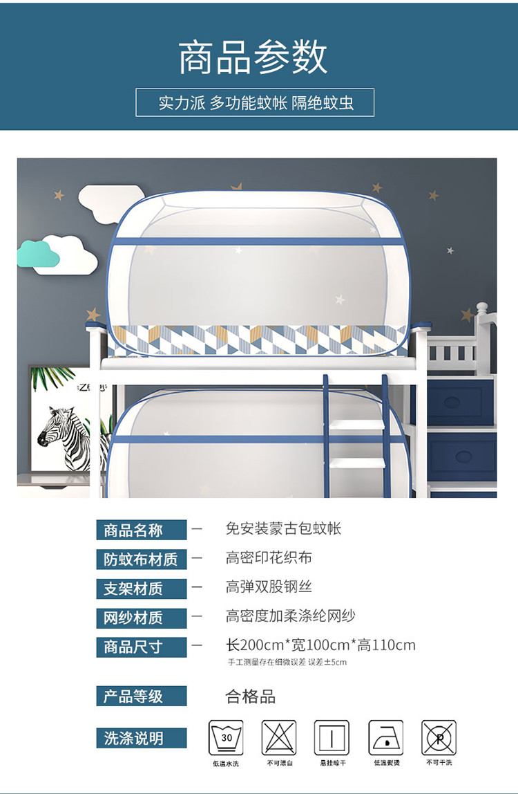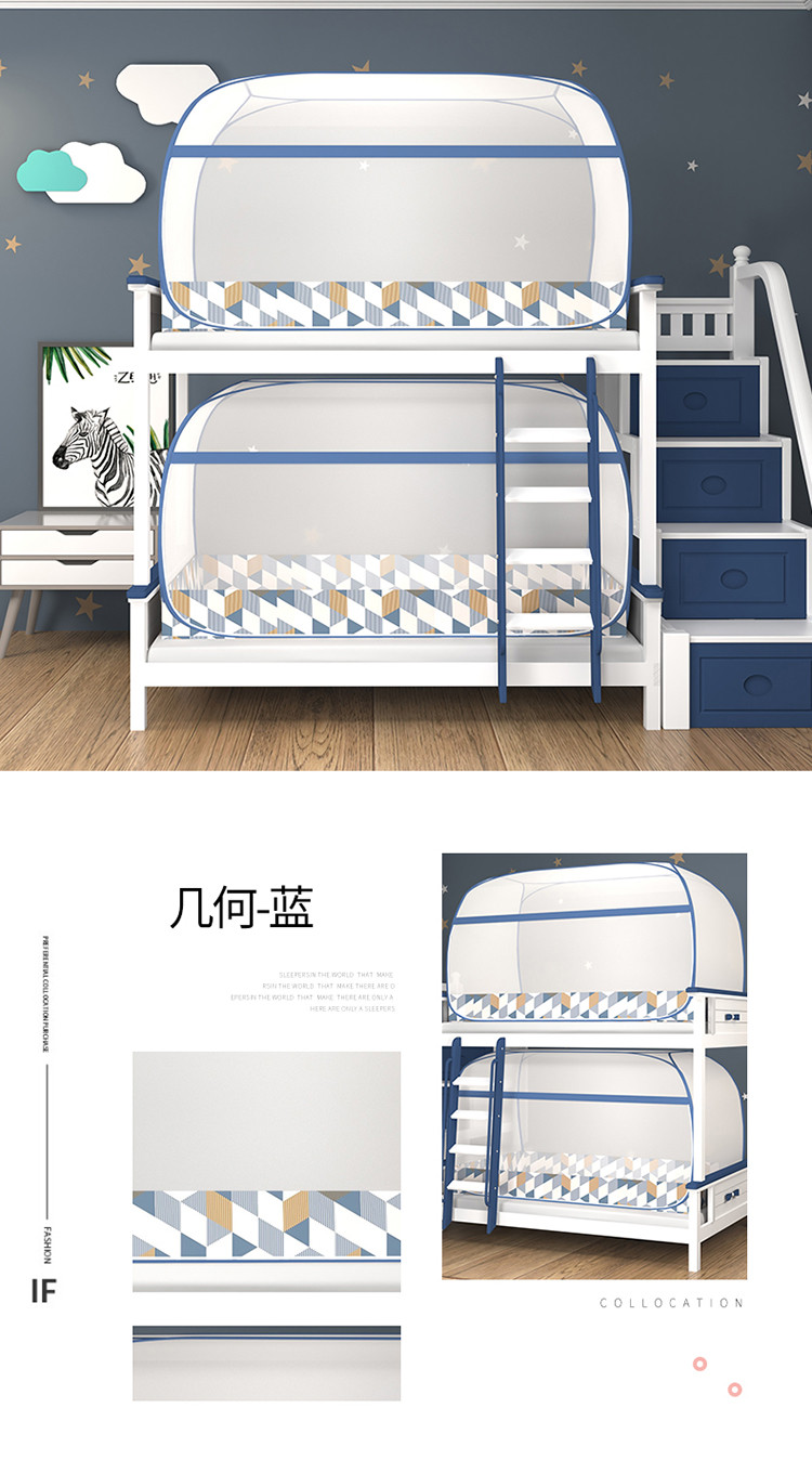 商品名称:佳梦家纺 2023新款学生上下铺免安装蒙古包蚊帐 几何-蓝