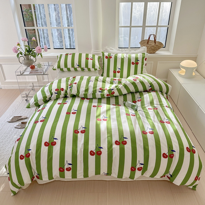(总)柚子YOUTH 225新款全棉双层纱球球款四件套,薄荷绿条,波点霉霉,波点小丑,蓝心,芊芊结,碎花点点