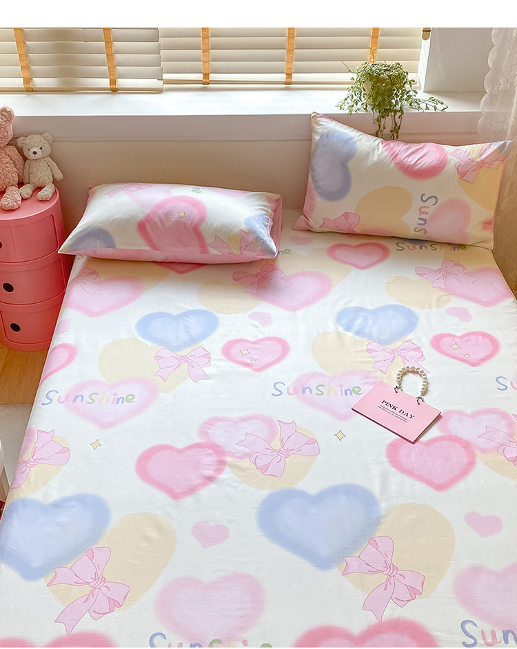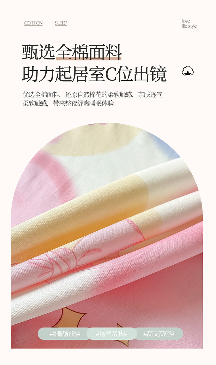 (总)蓝邻家纺 2024新款小清新印花全棉四件套学生宿舍三件套,茶园兔,风翩,机灵兔熊,可妮露,藤蔓兔,筱薇