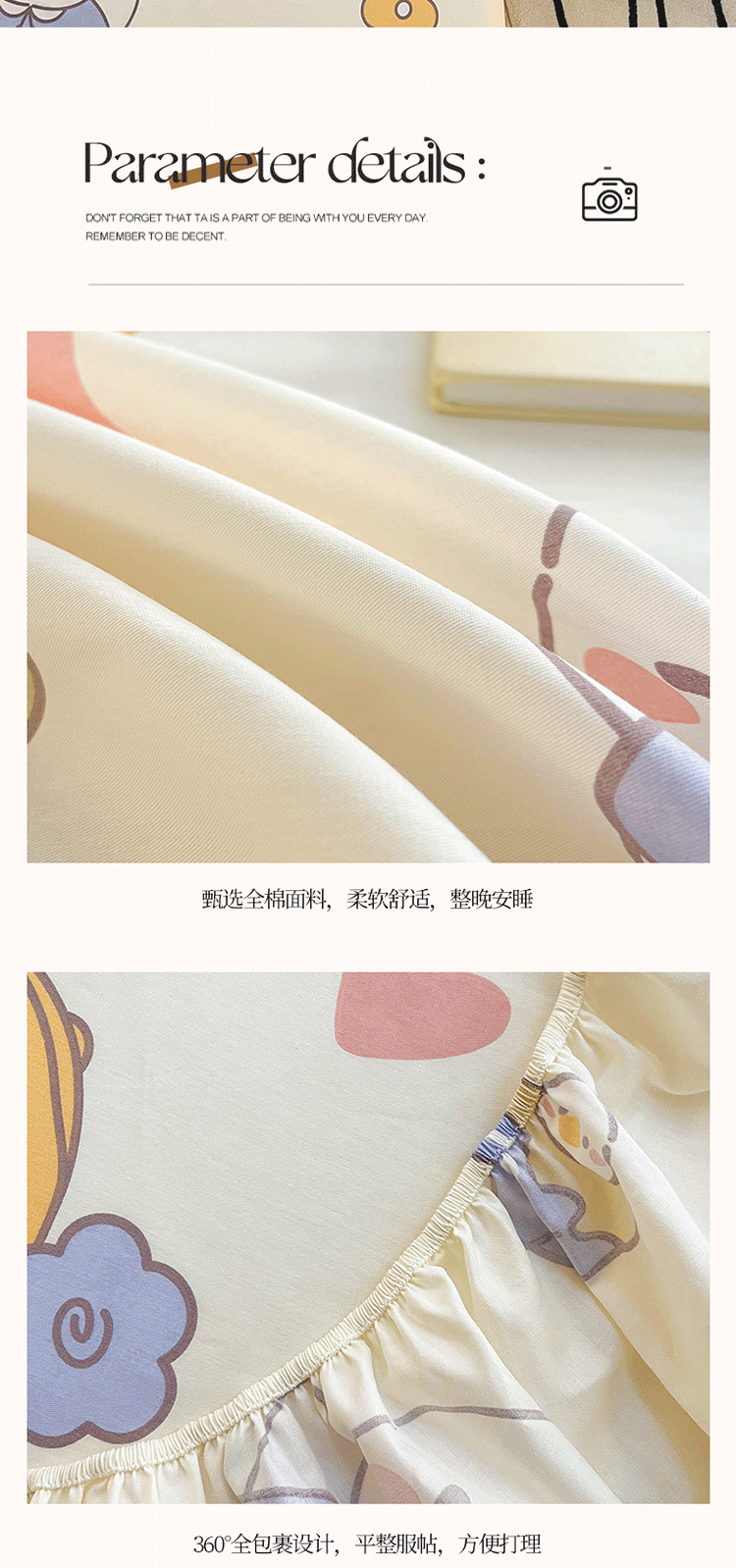 (总)蓝邻家纺 2024新款小清新印花全棉四件套学生宿舍三件套,茶园兔,风翩,机灵兔熊,可妮露,藤蔓兔,筱薇