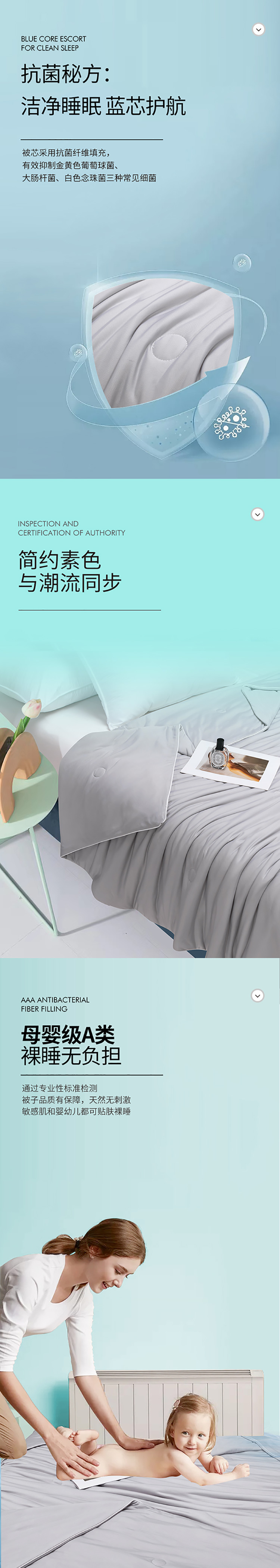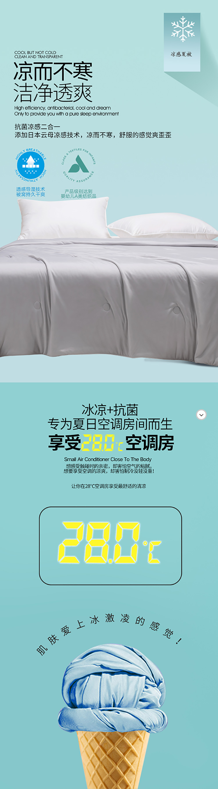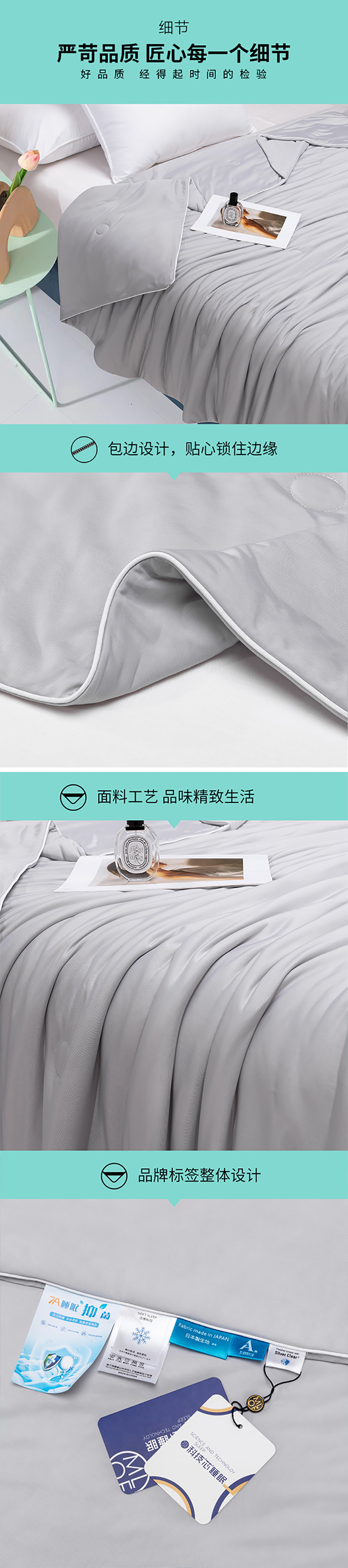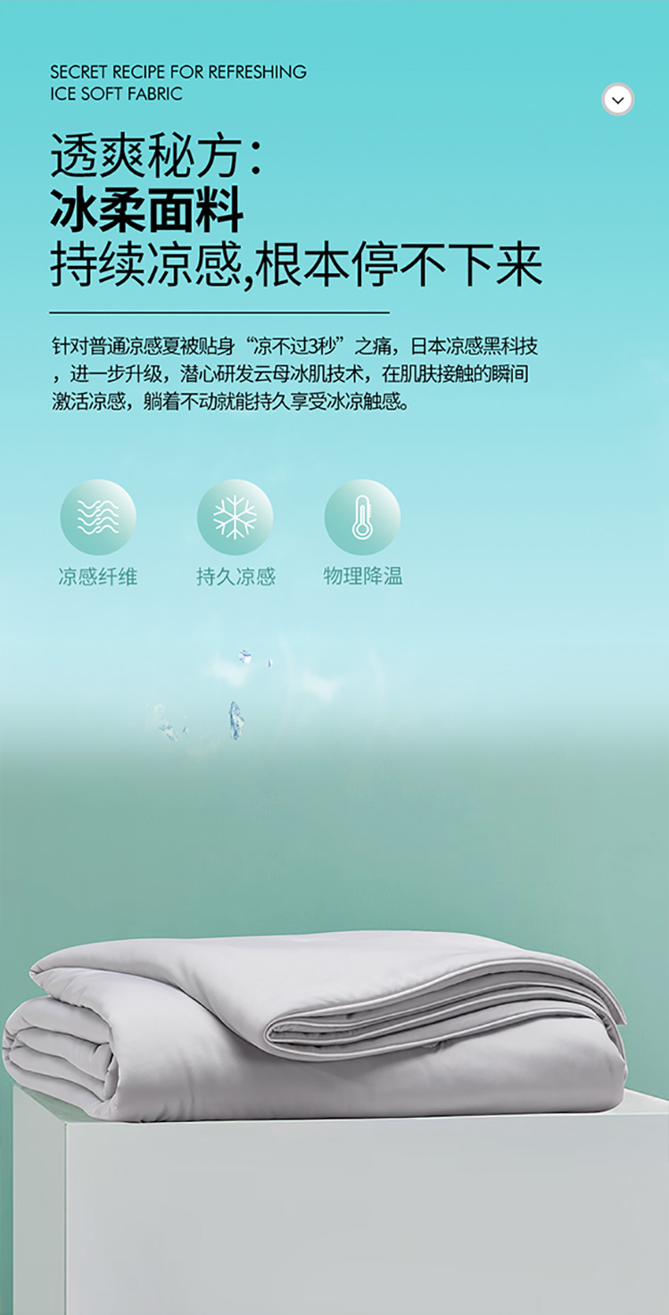 商品名称:若未家居 新款100%纯锦纶5A抗菌纤维填充凉皮冰激凌凉感夏被 天空灰