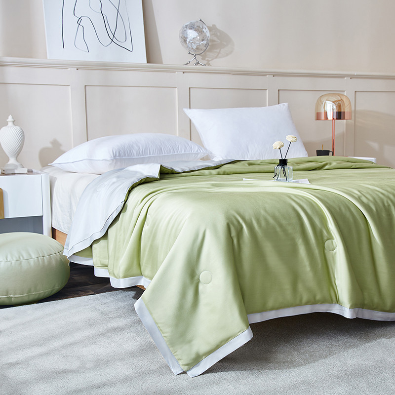 商品名称:华盛 2023新款春夏天丝夏凉被莫代尔天丝蚕丝夏被 绿拼浅灰