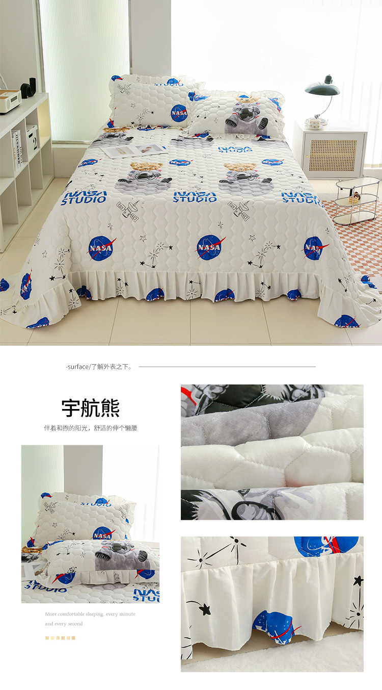 • 91家纺网 家纺一手货源 找家纺 情煊家纺 2023新款全棉夹棉印花床盖三件套(可定制尺寸) 宇航熊