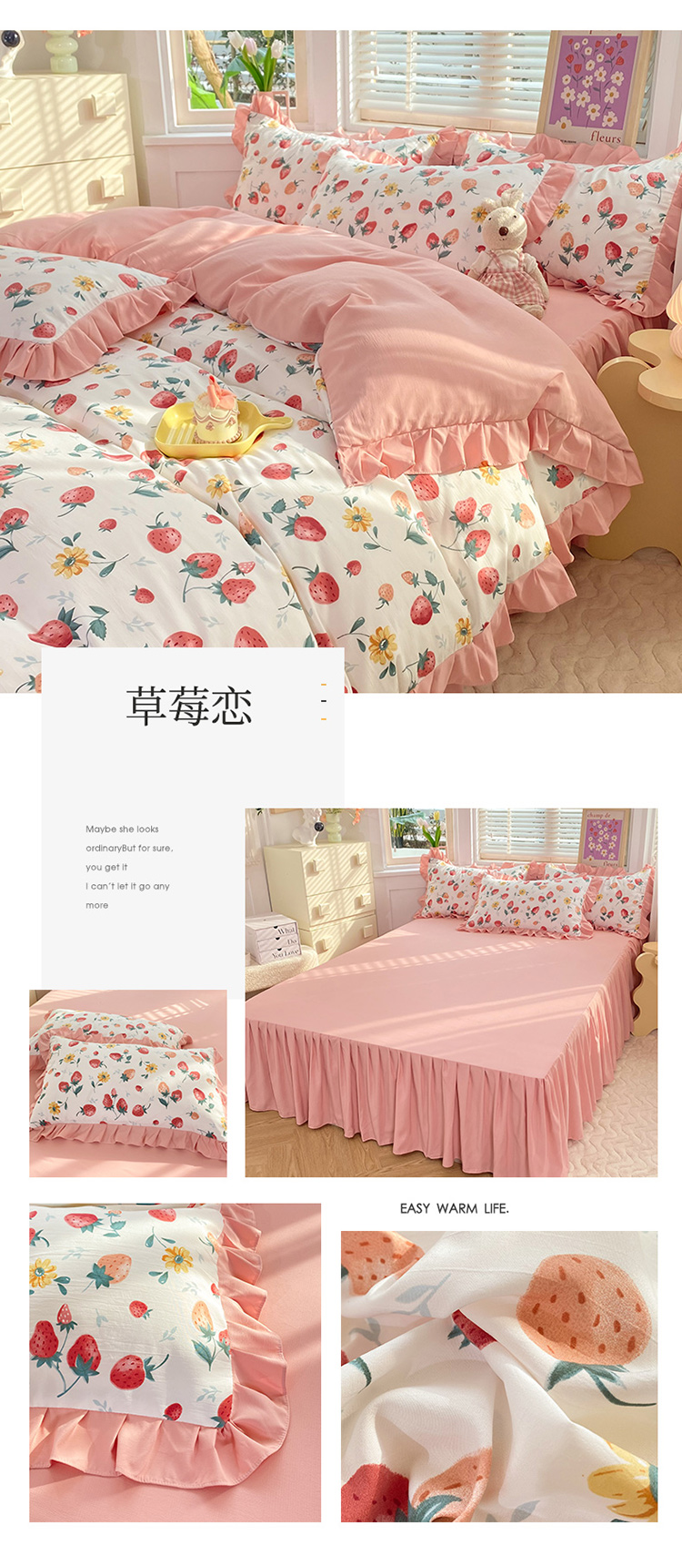 当前位置: 91家纺网 > 商品网购 > 床品套件 > 四件套 > 棉麻四件套 > 梦之岛 2023新款棉麻水洗双层纱床裙四件套 草莓恋