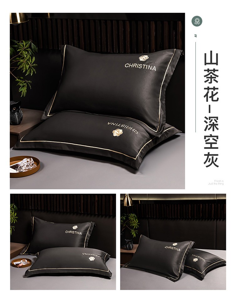 丽美人家纺 2023新款山茶花枕套 山茶花-深空灰