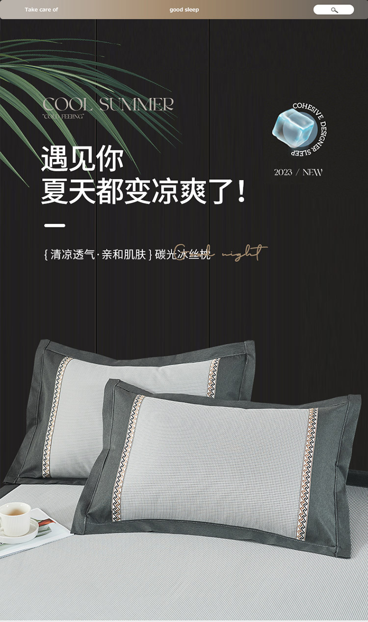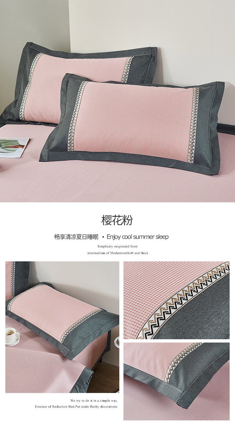 21度C 2023新款千鸟格碳光冰丝枕套可机洗水洗 樱花粉