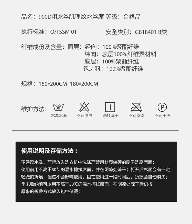 商品名称:宅部落 2023款900D粗冰丝肌理纹冰丝席 水绿色