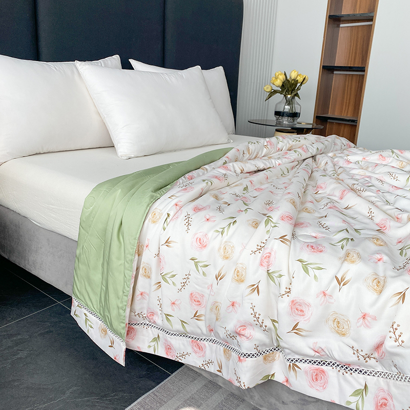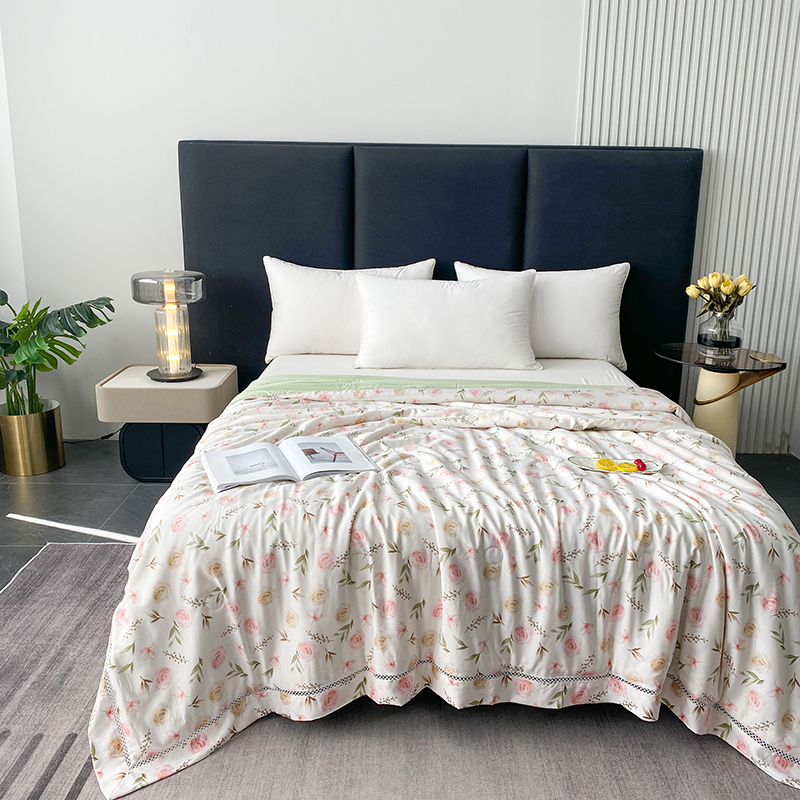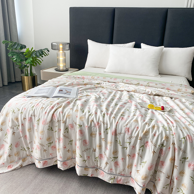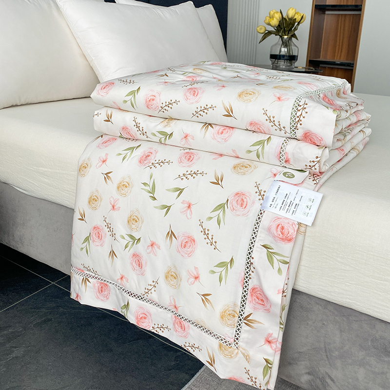 商品名称:太阳羽 2025新款铂金莱赛尔天丝印花夏凉被 镂空花边空调被 西野