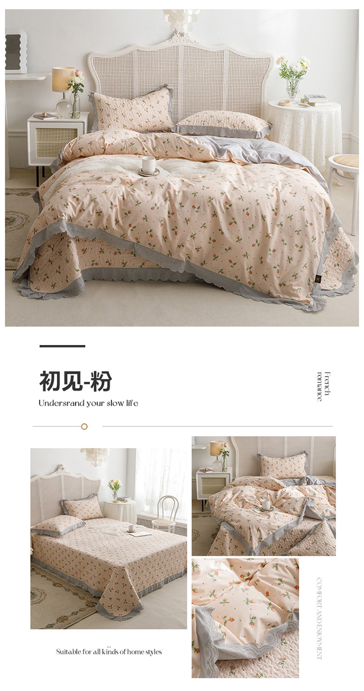 商品名称:富瑞阁 2024新款全棉水洗柔小棉床盖四件套 初见-粉