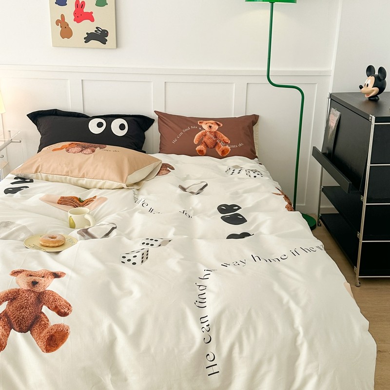 (总)昔可 2023新款学生季卡通普通款四件套,彩色气球熊,彩条恐龙,憨憨熊,花蜜小兔,蘑菇兔,圈圈草莓,蔬菜小兔,郁金香小萌狗