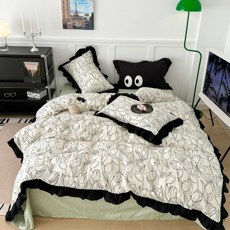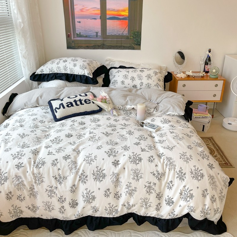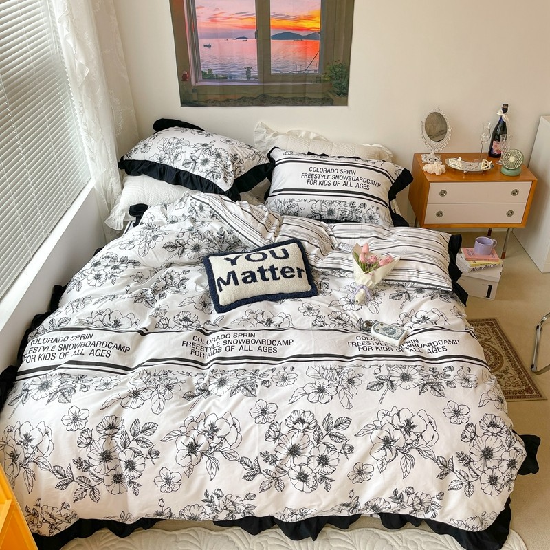 (总)昔可家纺 2023新款全棉四件套-第六批,芭蕾少女,粉粉花,花花小鹿,绿野小兔,玫瑰猫咪,梦镜小兔,黑色泼墨