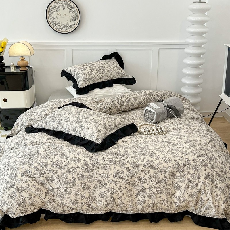 (总)昔可家纺 2024新款印花牛奶绒四件套系列-洛丽塔风,萝莉小兔,小熊烘焙屋,小熊玩偶屋