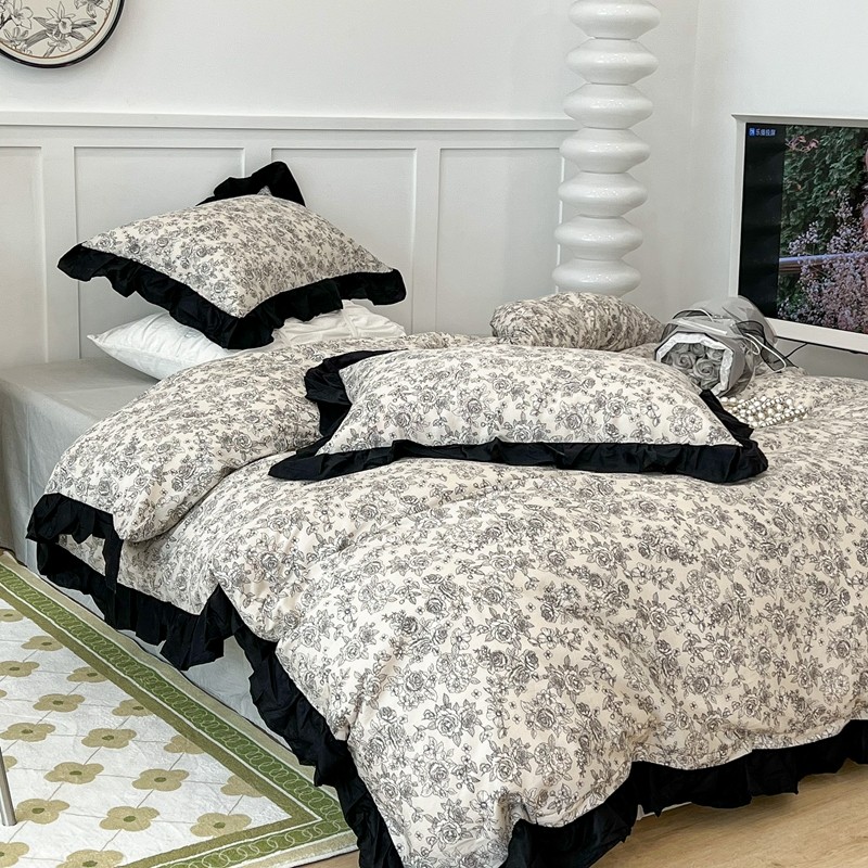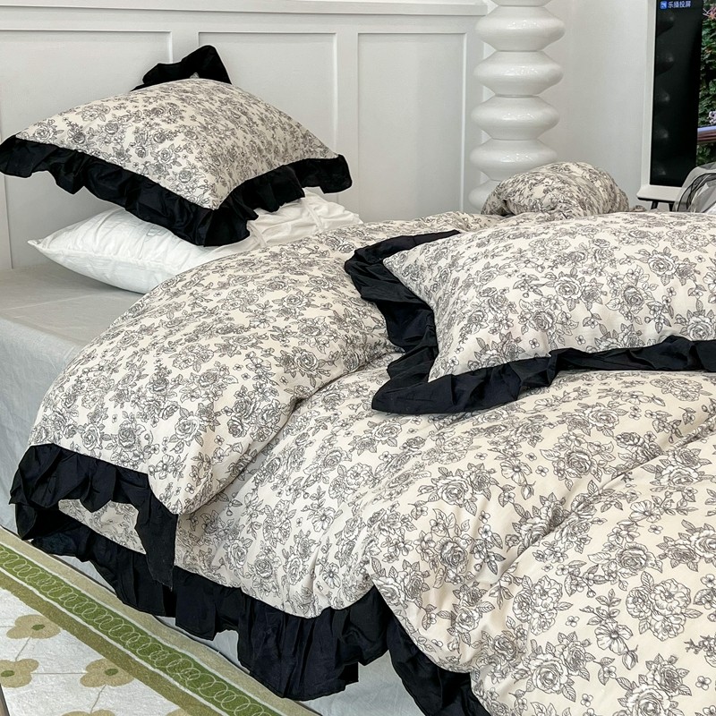 (总)昔可家纺 2023新款全棉四件套-第六批,芭蕾少女,粉粉花,花花小鹿,绿野小兔,玫瑰猫咪,梦镜小兔,黑色泼墨