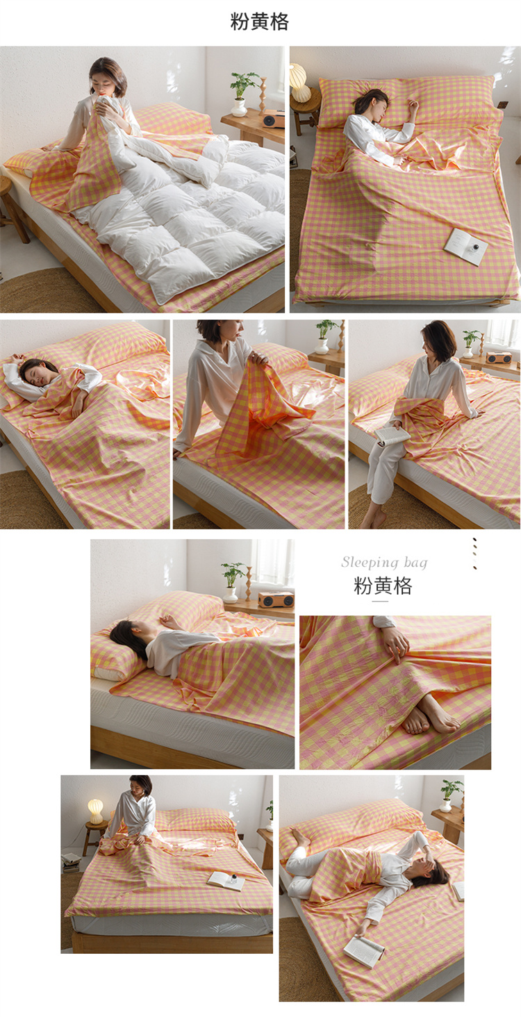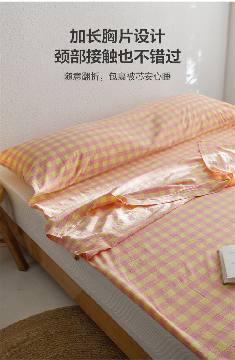西西家居2023新款日系色织水洗棉睡袋 粉黄格
