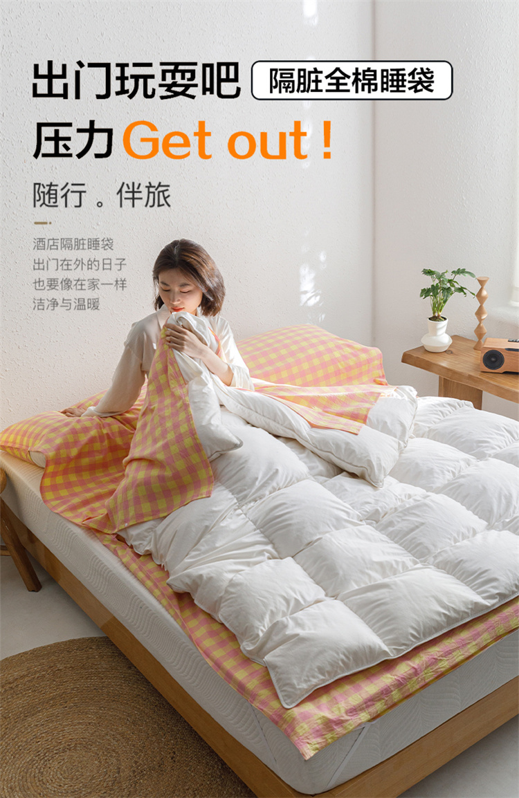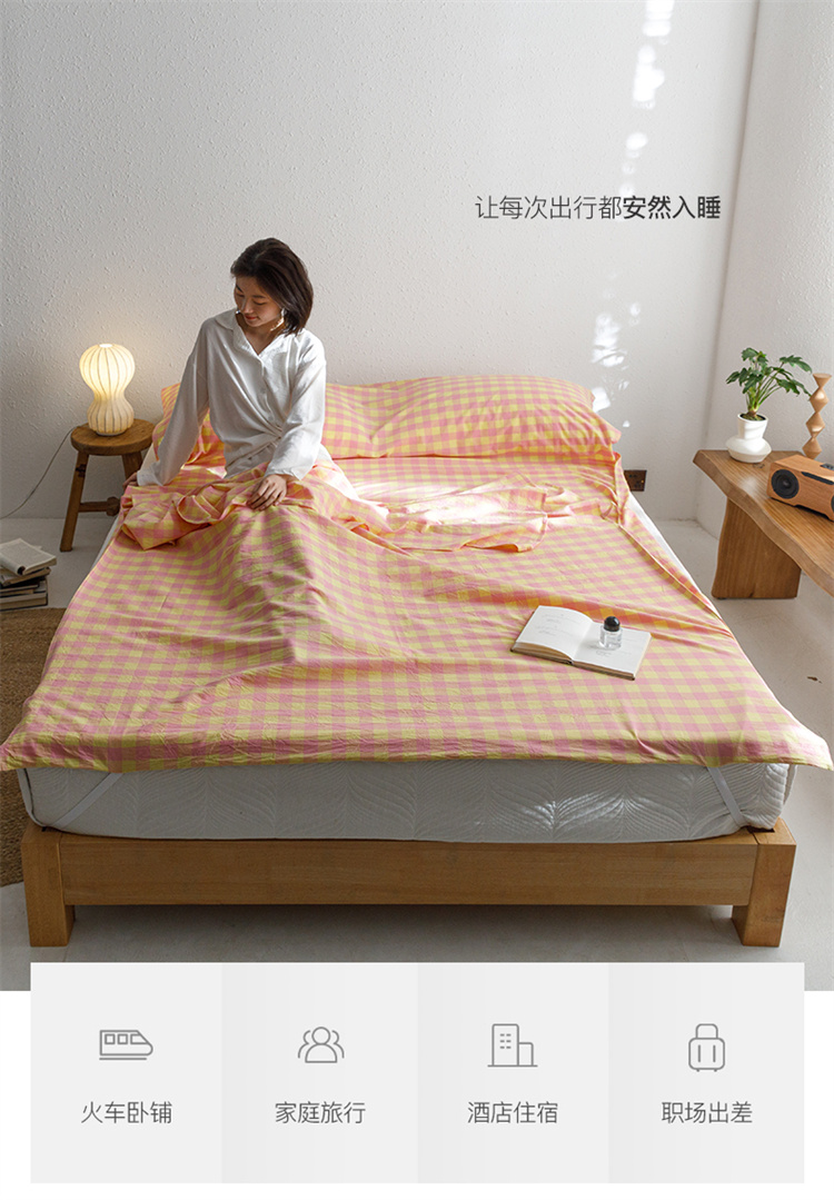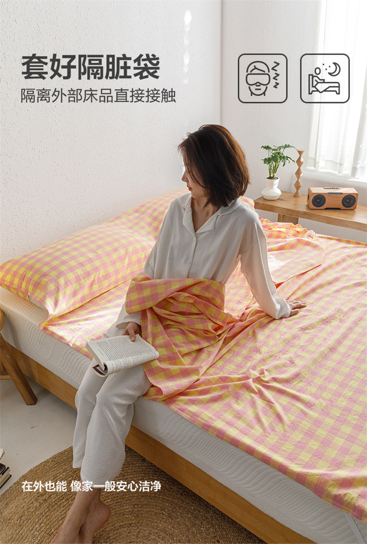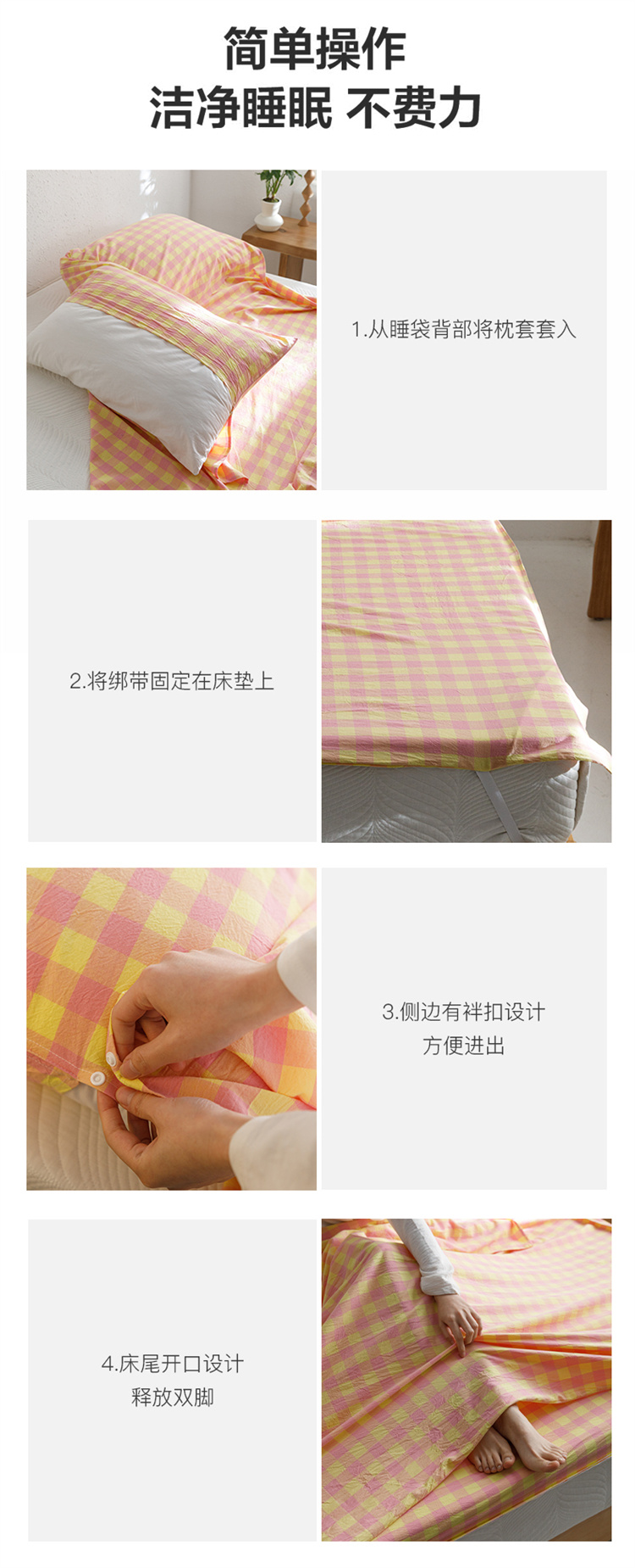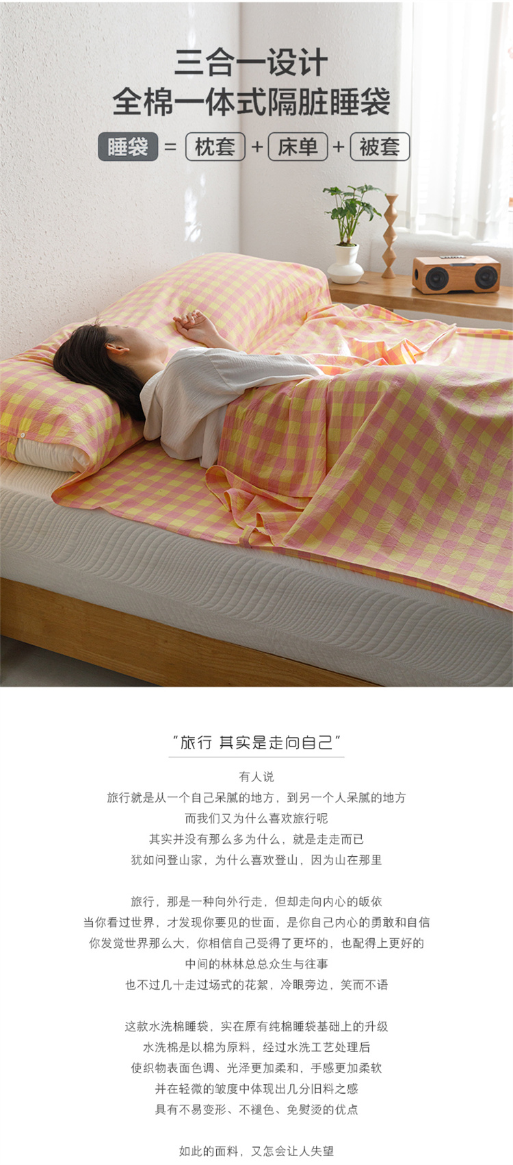 商品名称: 西西家居2023新款日系色织水洗棉睡袋 粉黄格