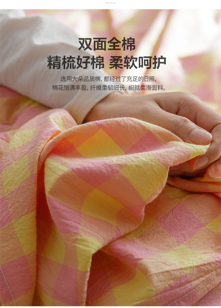 (总) 西西家居2023新款日系色织水洗棉睡袋,朵拉粉,朵拉蓝,朵拉绿,粉黄格,粉蓝格,粉绿格,桔蓝格,蓝黄格
