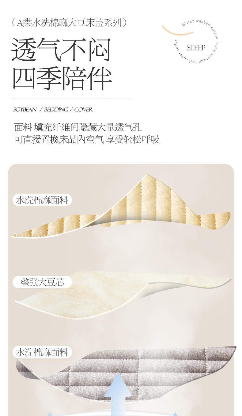 150*230cm【0.9-1.2床A类水洗棉麻床盖】