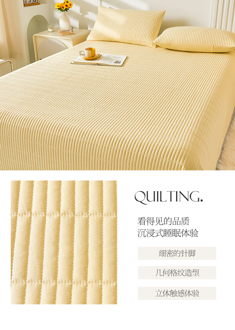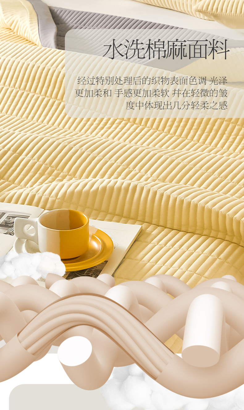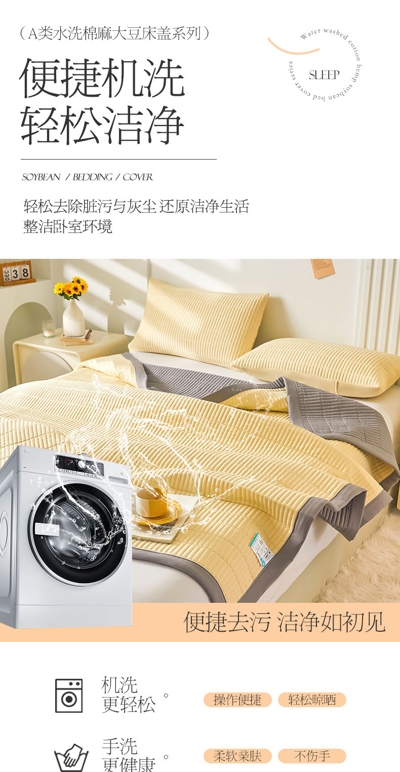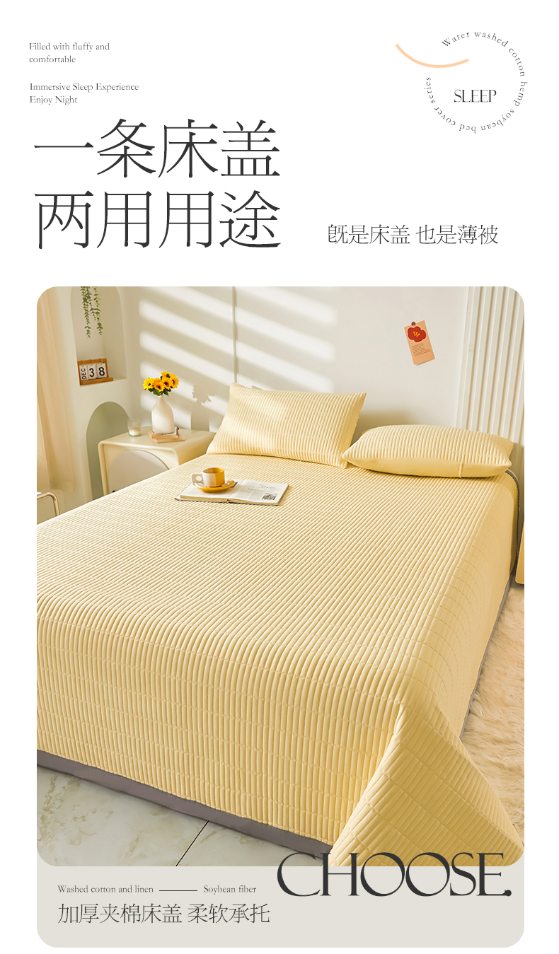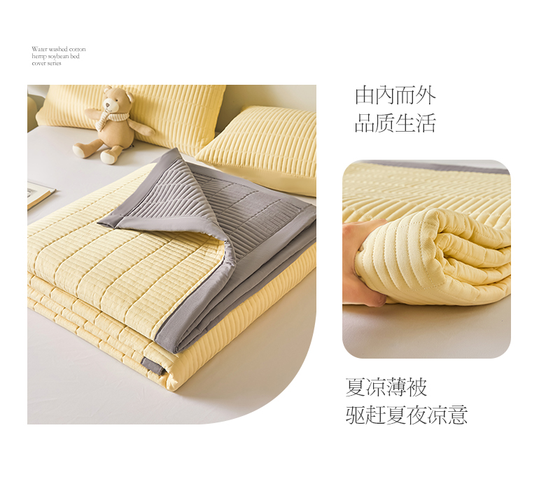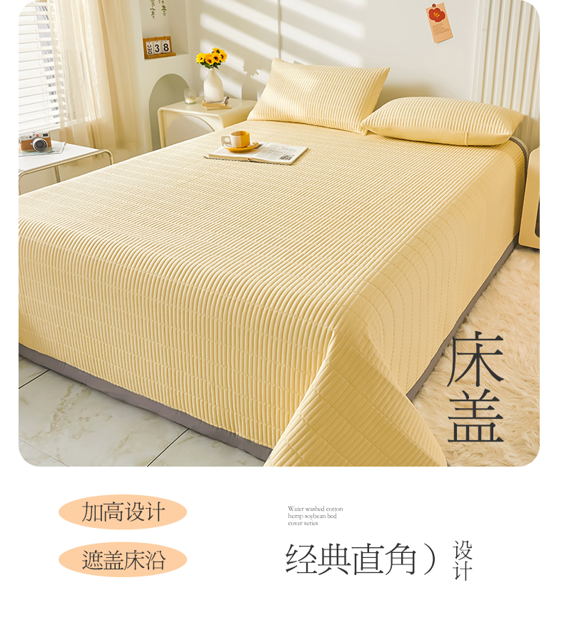 商品名称:水洗棉麻床盖大豆纤维夹棉加厚宿舍铺盖两用床单床裙保护垫鹅黄色