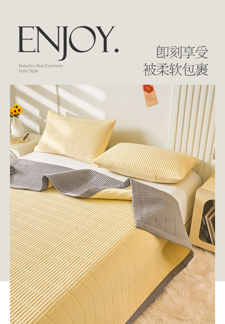水洗棉麻床盖大豆纤维夹棉加厚宿舍铺盖两用床单床裙保护垫鹅黄色
