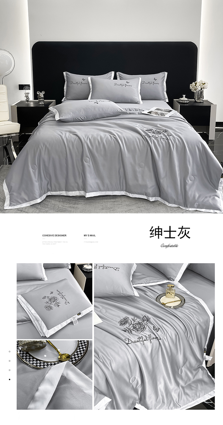 芯贝儿 2023新款雪莲天丝夏被四件套--花韵 绅士灰