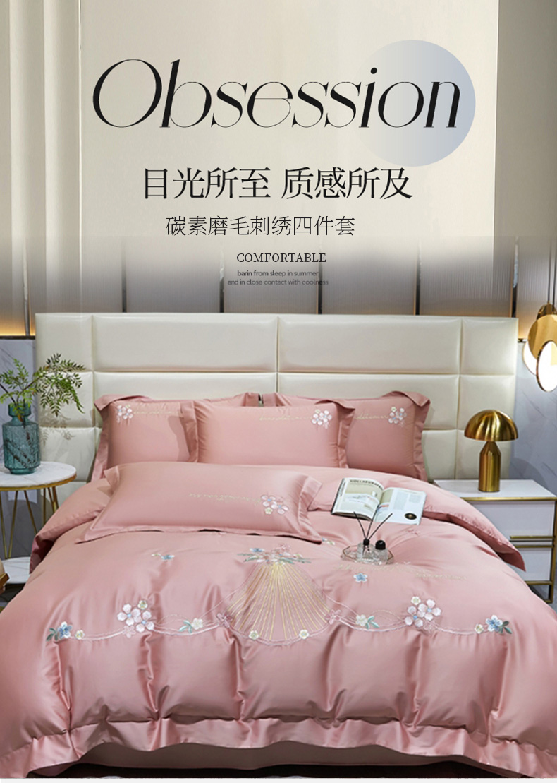 (总)优轩 2022新款碳素磨毛刺绣四件套-邂逅,邂逅-爱玛橙,邂逅-蒂芙尼绿,邂逅-豆沙粉,邂逅-孔雀绿,邂逅-柠檬黄,邂逅-绅士灰