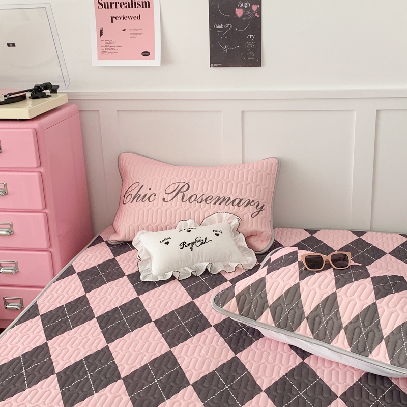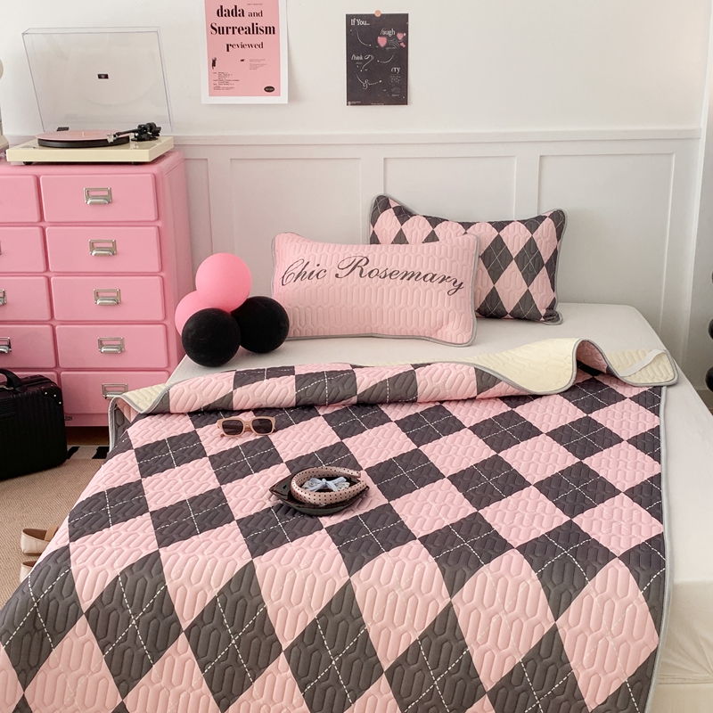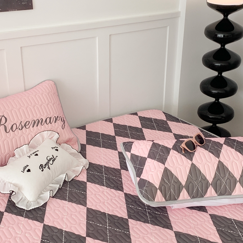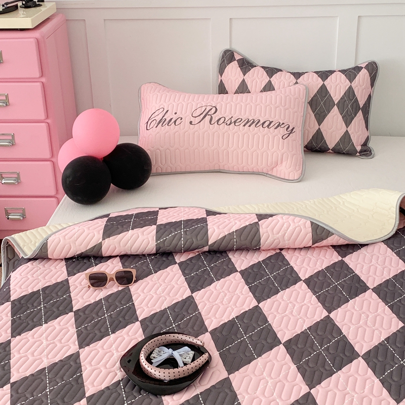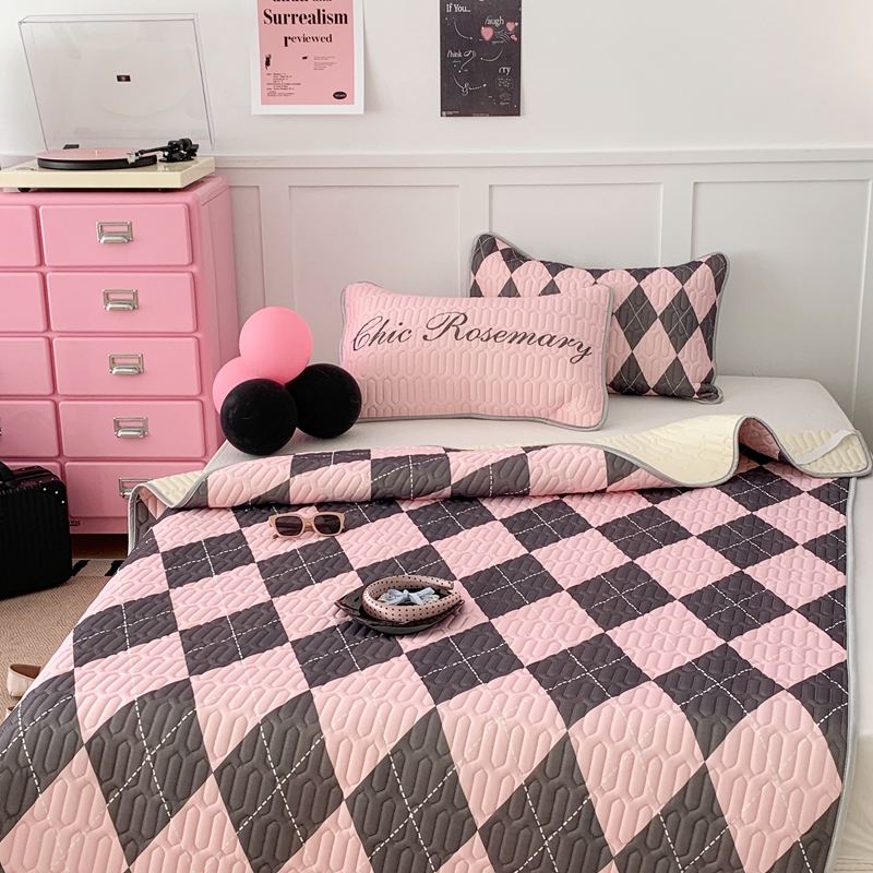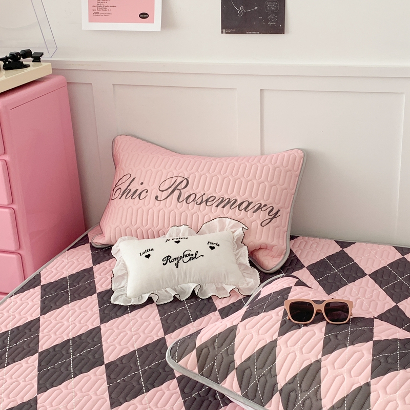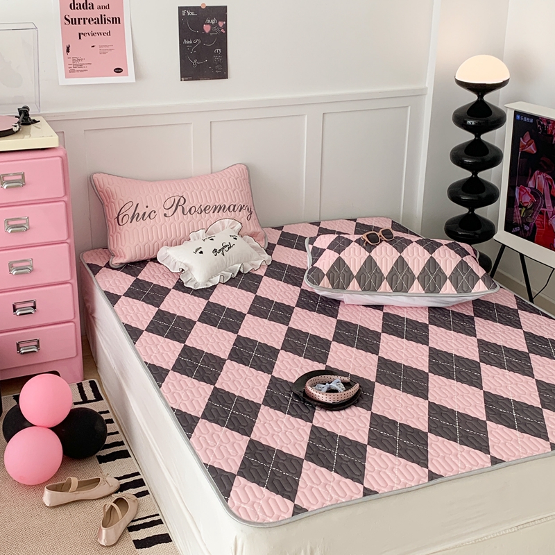 昔可家纺2023新款甜酷黑粉系列乳胶凉席 学院菱格黑粉色