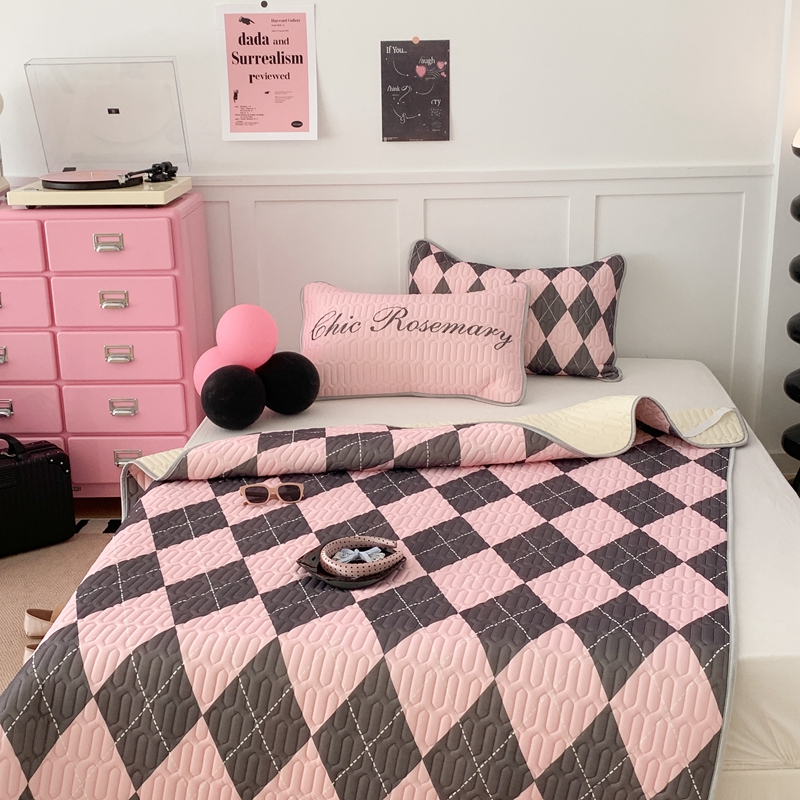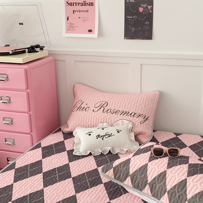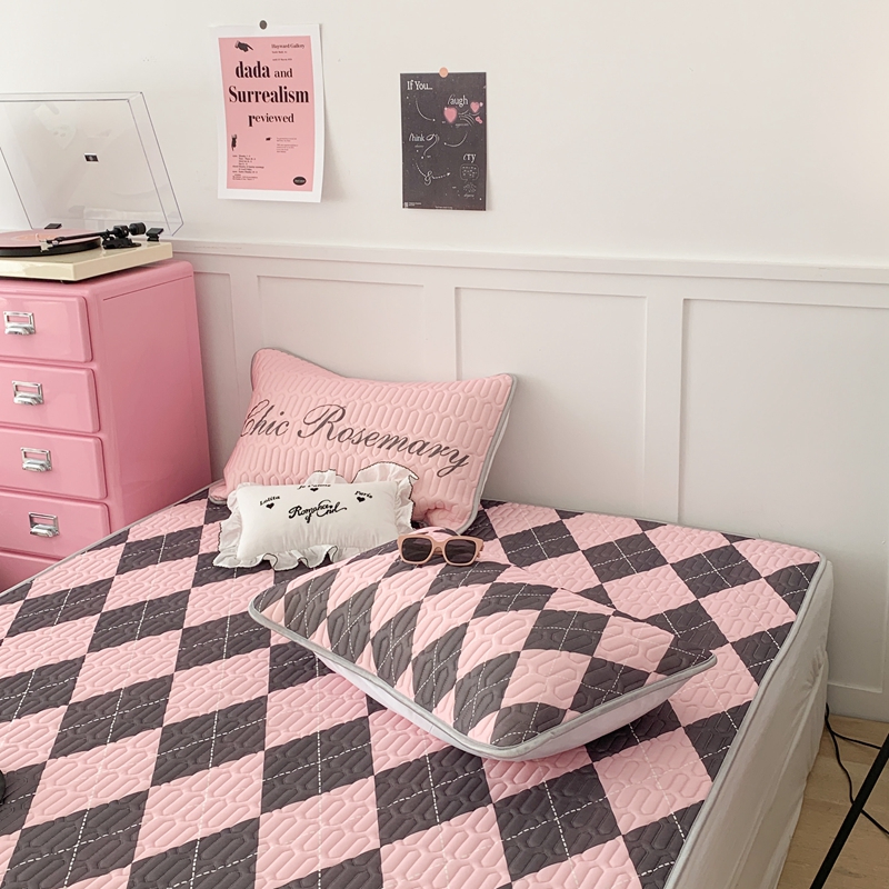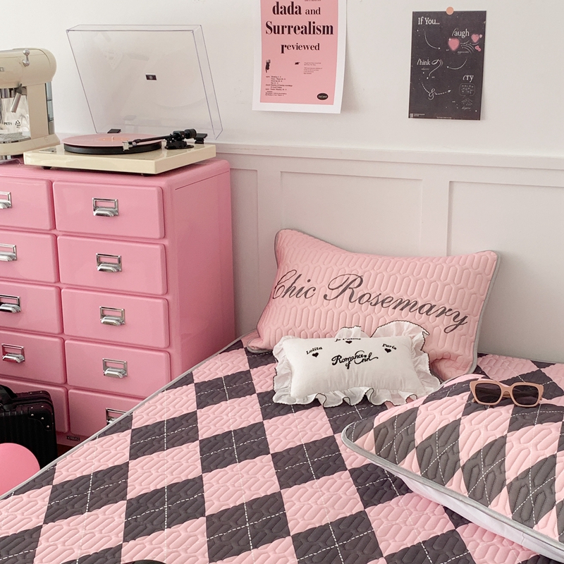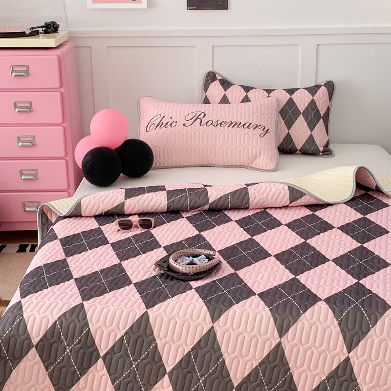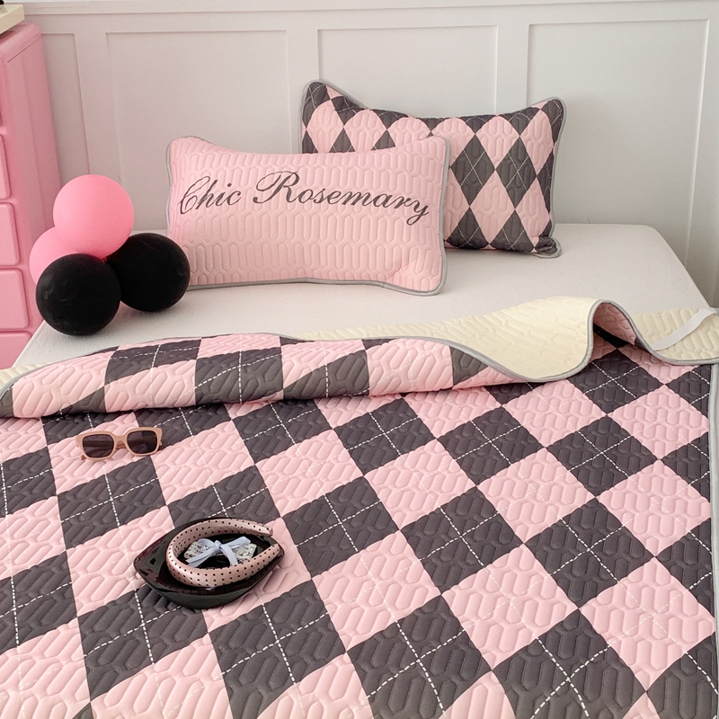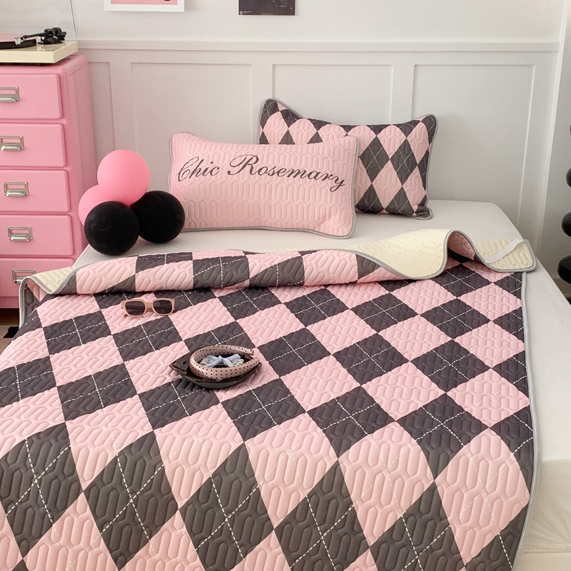 昔可家纺2023新款甜酷黑粉系列乳胶凉席 学院菱格黑粉色