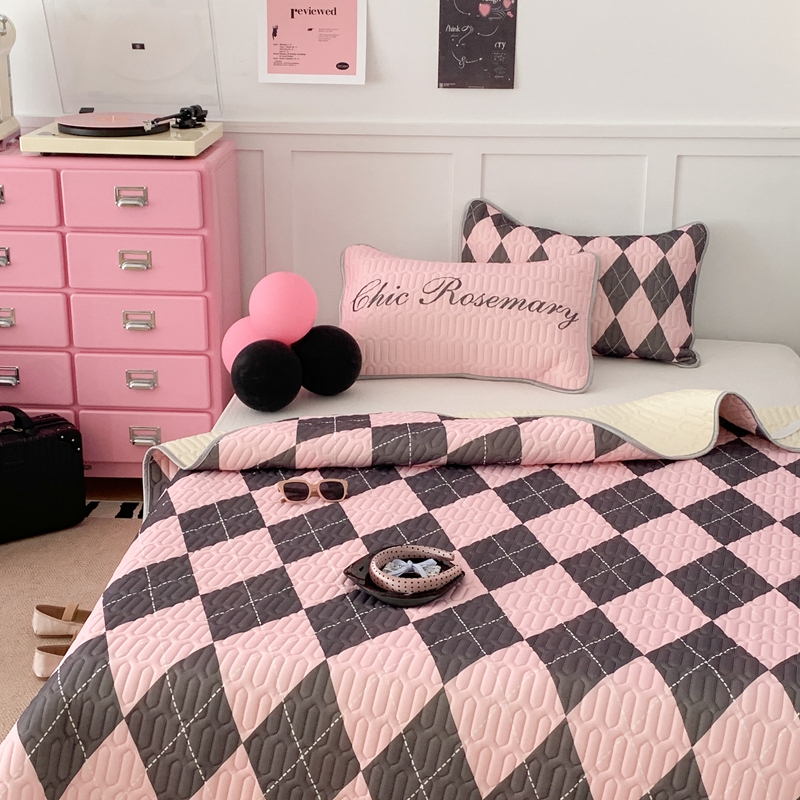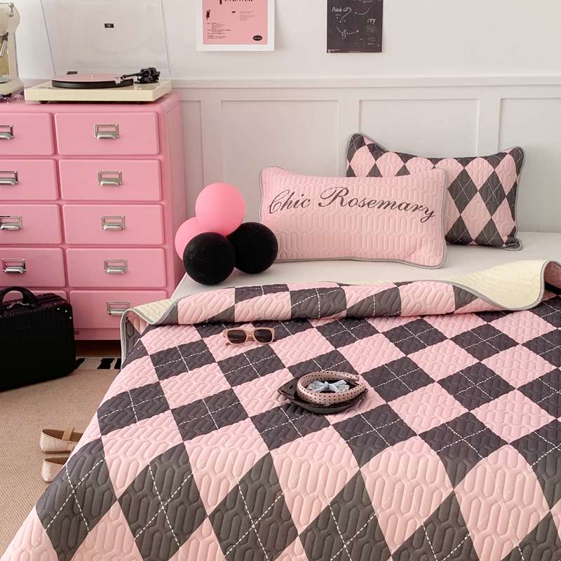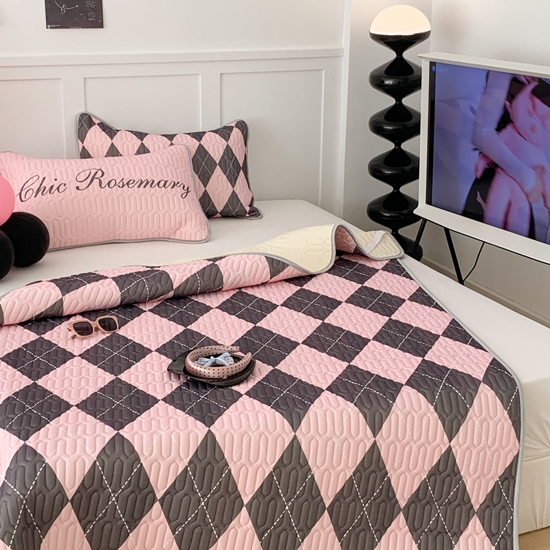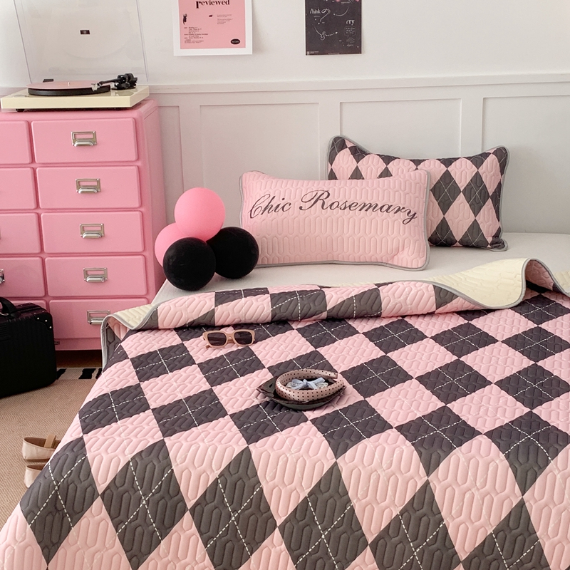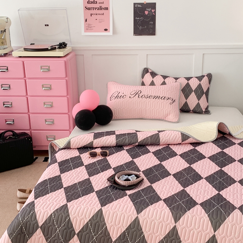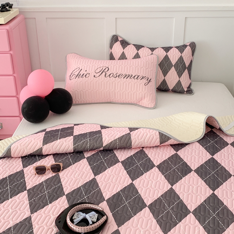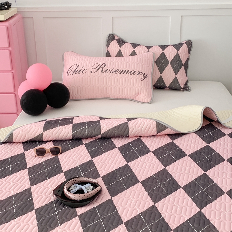 昔可家纺2023新款甜酷黑粉系列乳胶凉席 学院菱格黑粉色