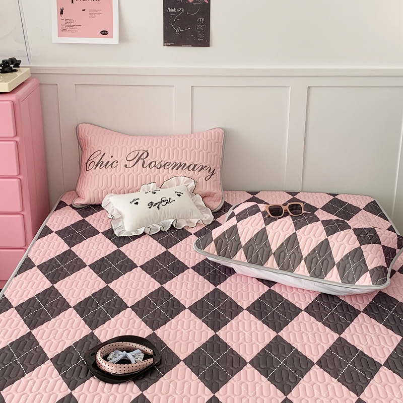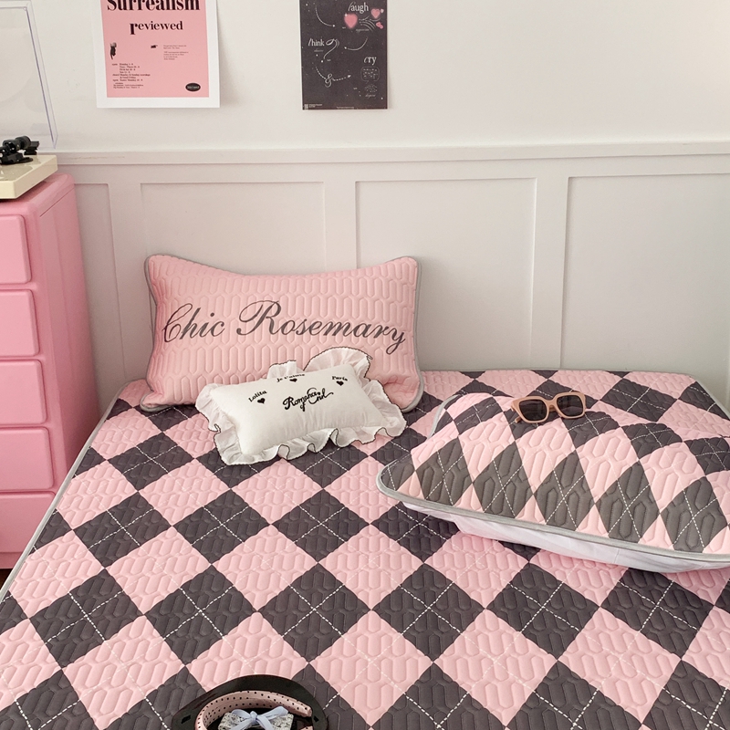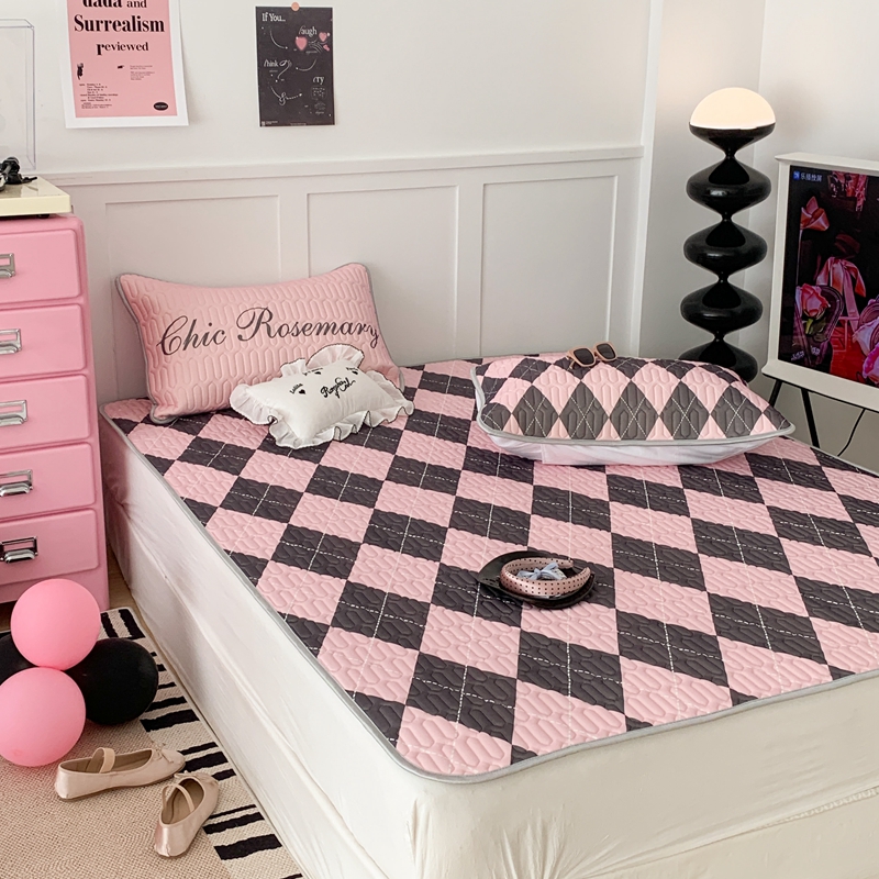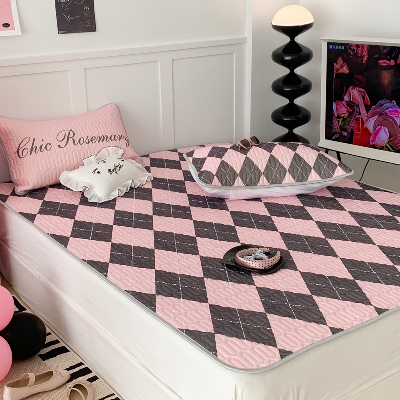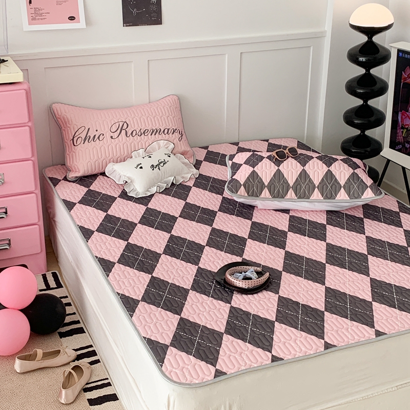 商品名称:昔可家纺2023新款甜酷黑粉系列乳胶凉席 学院菱格黑粉色