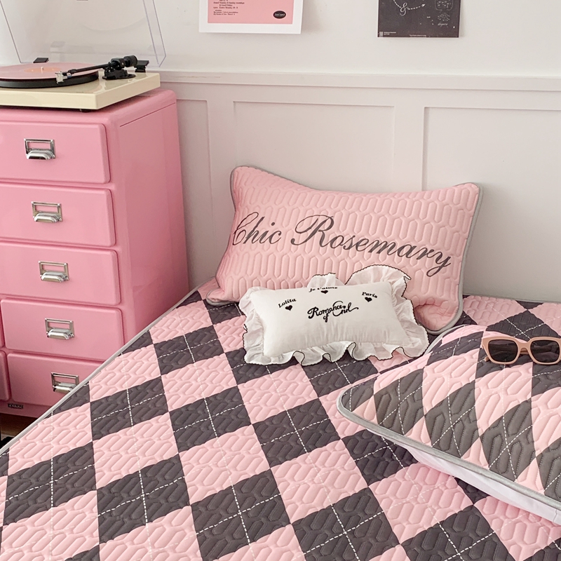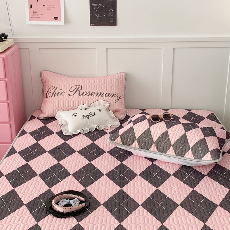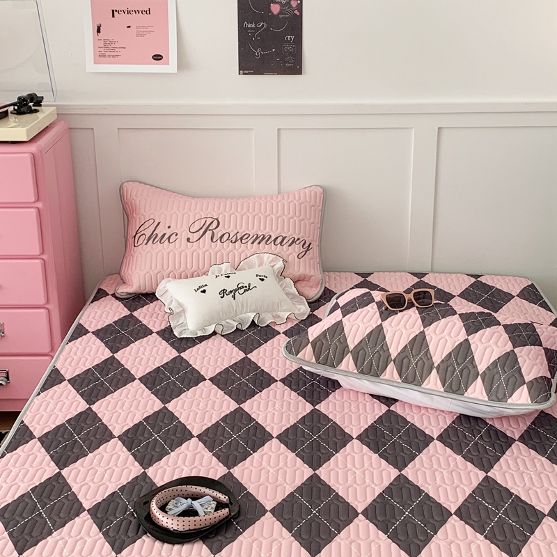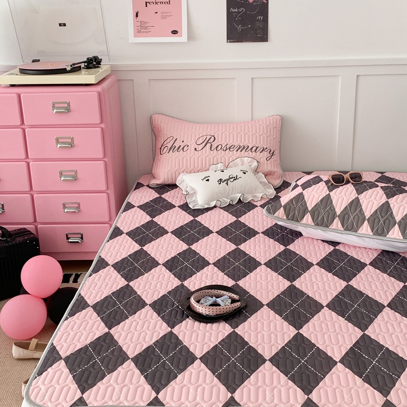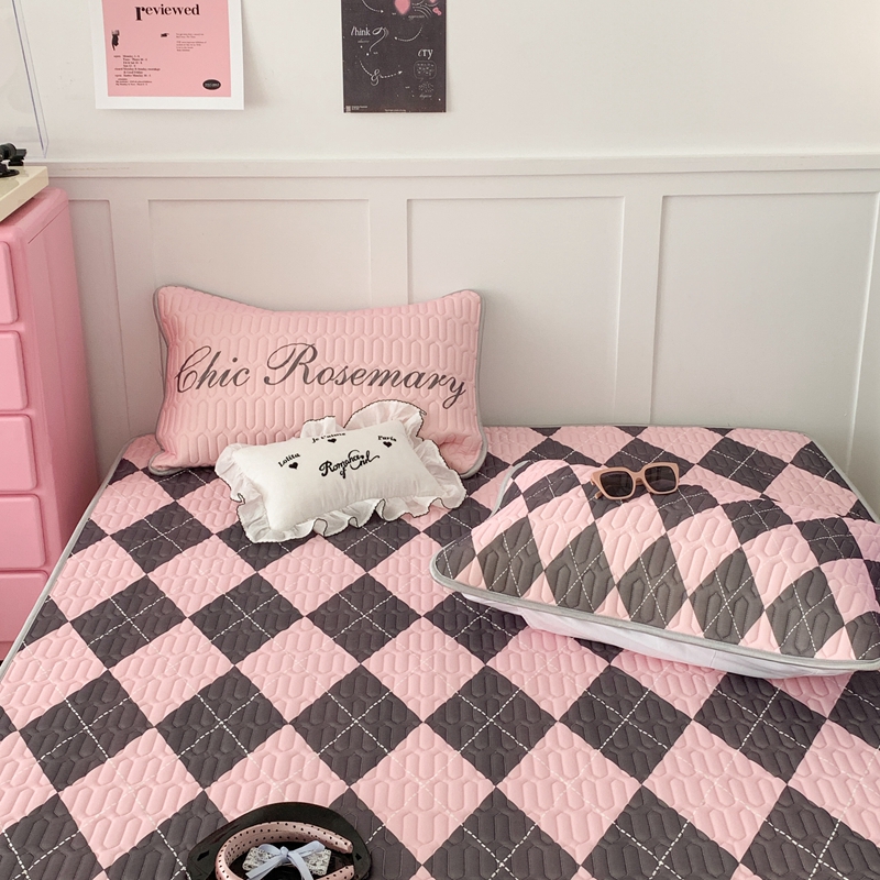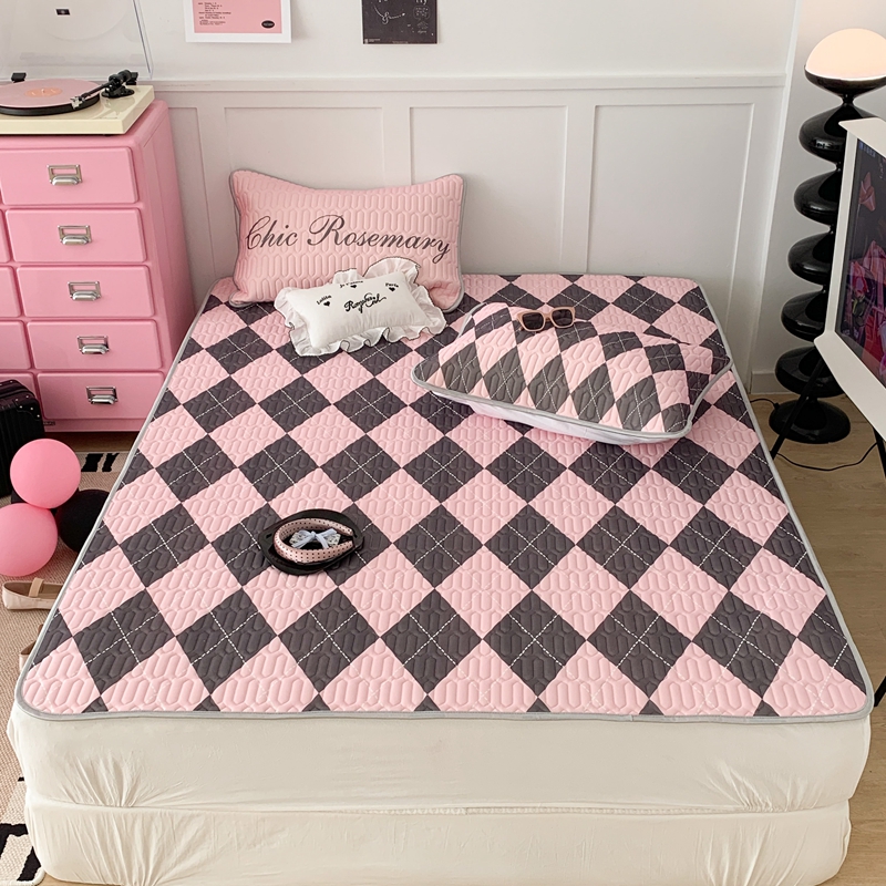 商品名称:昔可家纺2023新款甜酷黑粉系列乳胶凉席 学院菱格黑粉色