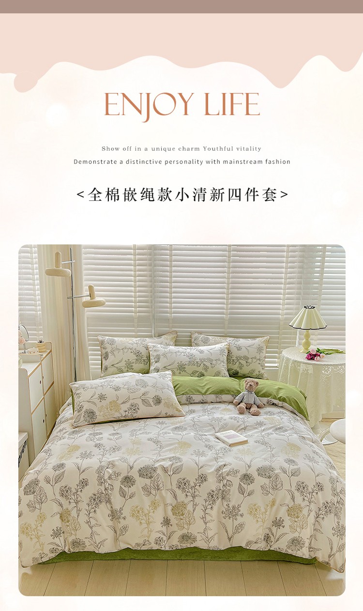 捌月 2023爆款全棉小清新嵌绳工艺四件套 知意