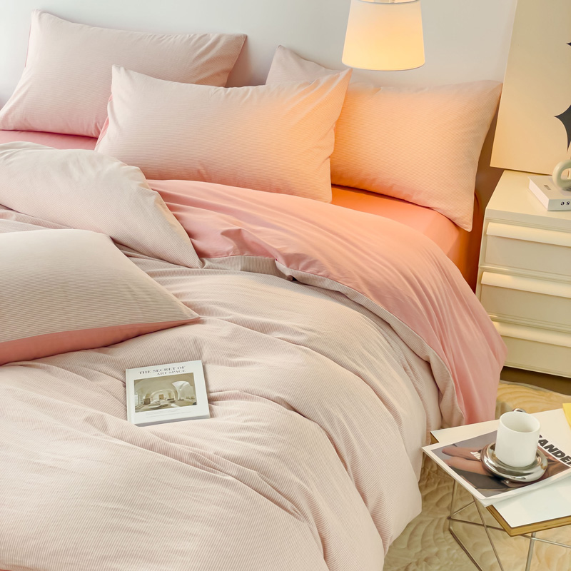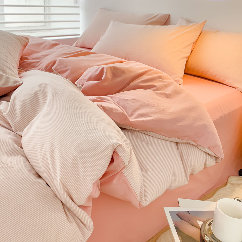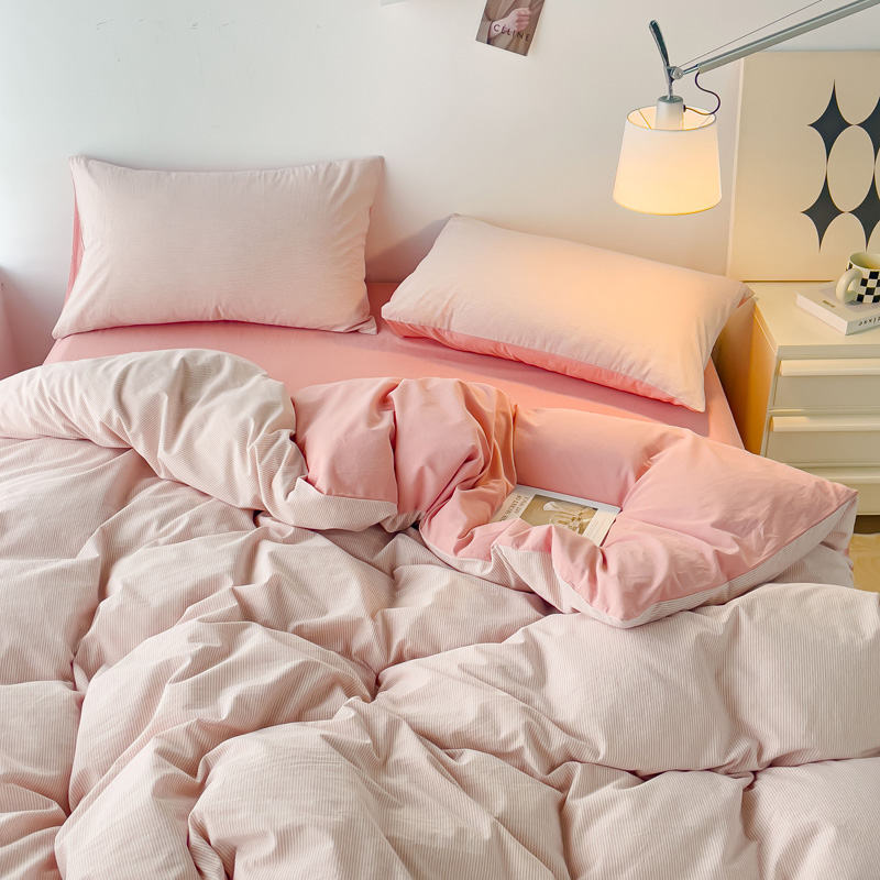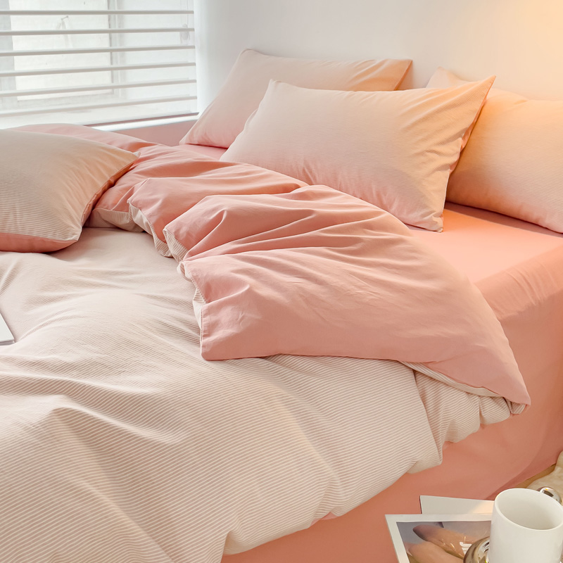 当前位置: 91家纺网 > 商品网购 > 床品套件 > 四件套 > 水洗棉四件套 > 金丝鸟 2023新款全棉水洗棉简单款条纹系列 简约条纹 粉