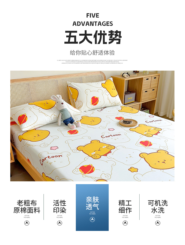 当前位置: 91家纺网 > 商品网购 > 床品套件 > 多件套 > 多件套 > 芃成家纺 2023新款全棉老粗布床笠 熊仔宝宝