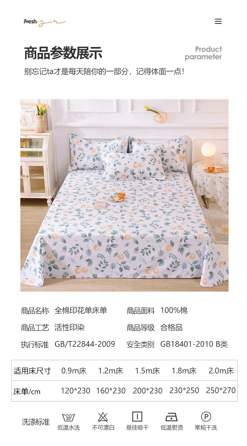 商品名称:多品家纺 2023新款12868全棉单床单 小蜜橘